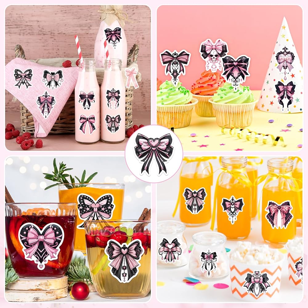• [ديكورات أنيقة لأي احتفال] تضفي هذه الملصقات ذات القوس الوردي والأسود لمسة راقية وممتعة على أي مناسبة. سواء كنت تستضيف حفلة عيد ميلاد، أو حفل زفاف، أو تجمع بطابع الكوكتيل، فإن ملصقات القوس هذه تمثل الديكور المثالي. من المؤكد أن التصميمات الأنيقة ستثير إعجاب الضيوف وتضيف لمسة لا تُنسى إلى احتفالاتك.