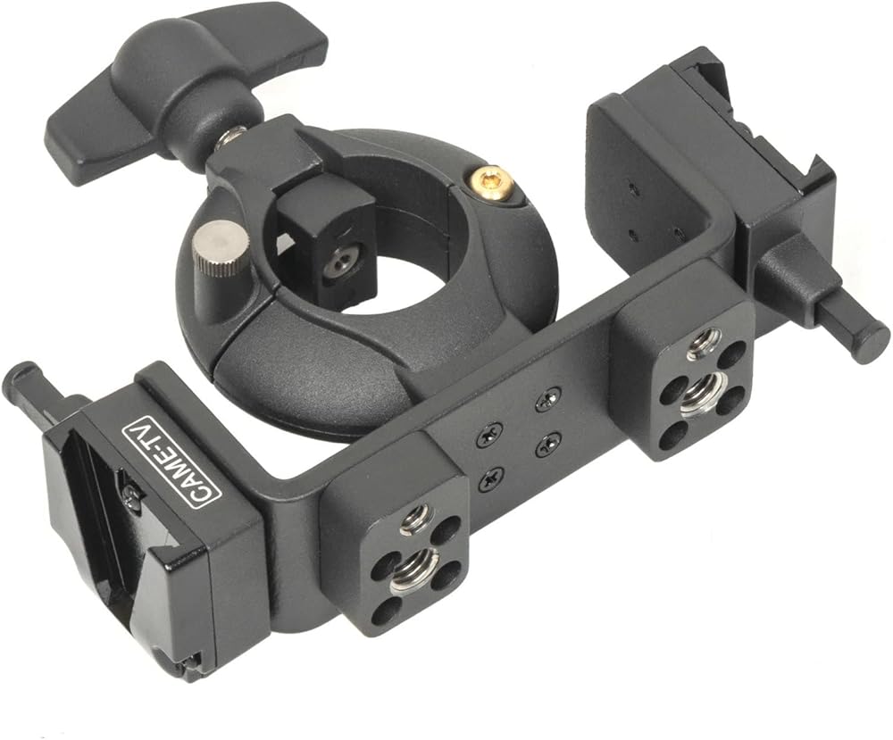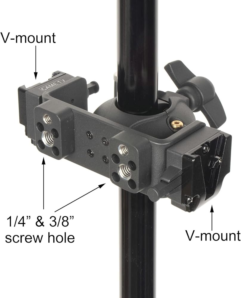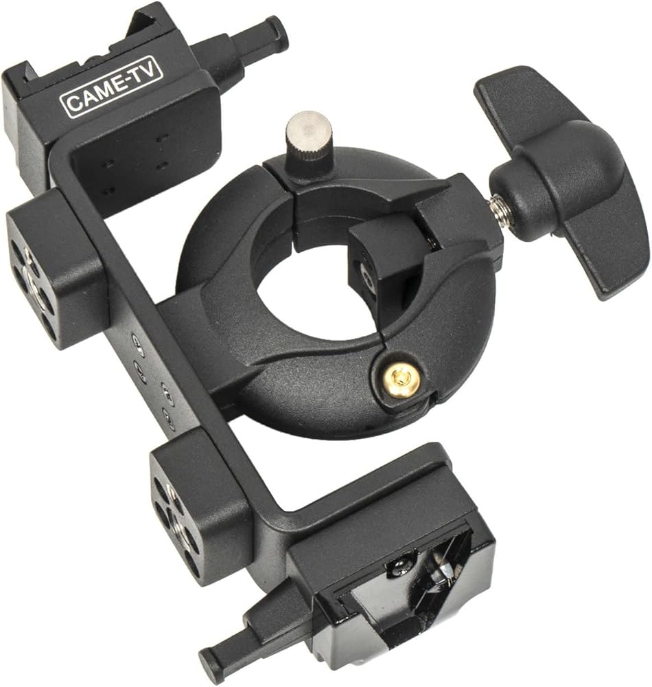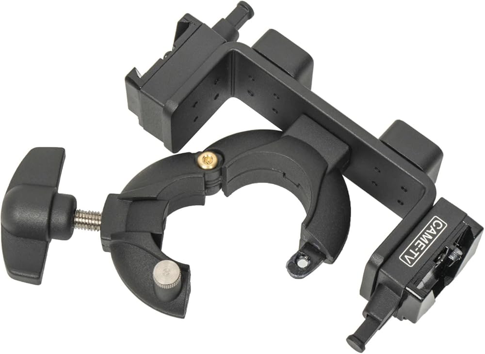 The swing clamp is tooless adjustable from 22-36mm (0.86"-1.30") to securely fit a variety of round tubing such as a light stand or tripod for mounting of accessories. This version incorporates a center saddle to minimize marking on the clamping surface. The design of the clamp allows for easy fitment and removal. To install unscrew the wing bolt, release the locking pin, clamp over the tubing, engage the locking pin and tighten the wing bolt until secure. There are built in V-Mounts along with 1/4" and 3/8" threaded holes for mounting accessories.