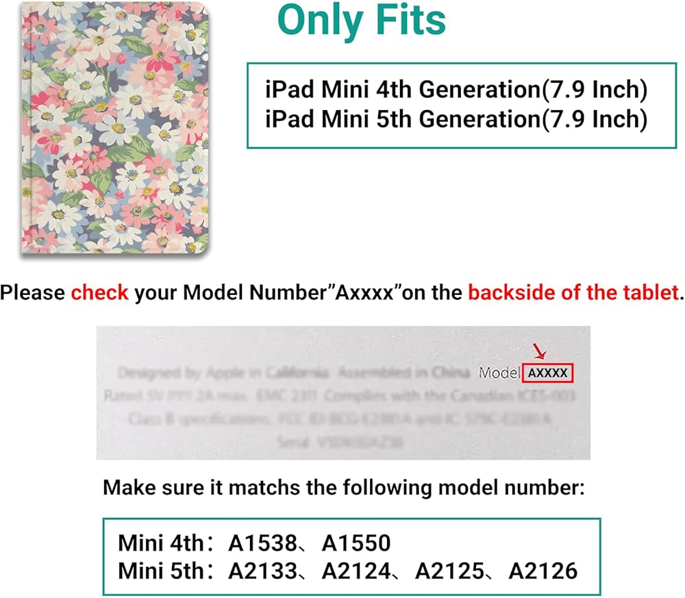 ملاءمة مثالية: حافظة iPad هذه مناسبة تمامًا لجهاز iPad Mini 4th/5th Generation 7.9 بوصة. رقم الموديل: A2133/ A2124/ A2126/ A2125/ A1538/ A1550. يرجى التحقق من ذلك قبل إجراء عملية شراء