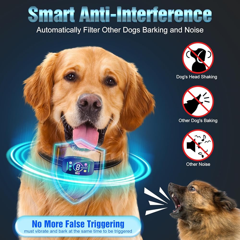 【تقنية الذكاء الاصطناعي بالموجات فوق الصوتية المطورة الجديدة واهتزاز الصفير】يعتمد طوق النباح الذكي الخاص بنا على رقاقة التعرف على لحاء الكلاب الذكية المتقدمة بتقنية الذكاء الاصطناعي وتقنية كشف الحركة. عند حساسية 1-8، يتم تنشيطه فقط عند اكتشاف الحركة والنباح. تقوم هذه التقنية بتصفية نباح الكلاب الأخرى بأمان وفعالية، وتمنع التحفيز الكاذب بنسبة 100% وتحمي كلبك من العقاب غير الضروري.