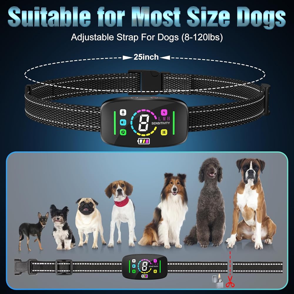 【طوق نباح الكلاب قابل للتعديل يناسب جميع السلالات والأحجام】يبلغ طول مقود طوق نباح الكلاب 25 بوصة، ويمكنك ضبط طول مقود طوق النباح التلقائي حسب الحاجة، والنطاق القابل للتعديل هو 8-25 بوصة، ومناسب للكلاب من جميع الأحجام. عندما يتم وضع طوق النباح بشكل صحيح حول رقبة الكلب وفقًا للتعليمات، فلن يتمكن الكلب من التحرر من تلقاء نفسه
