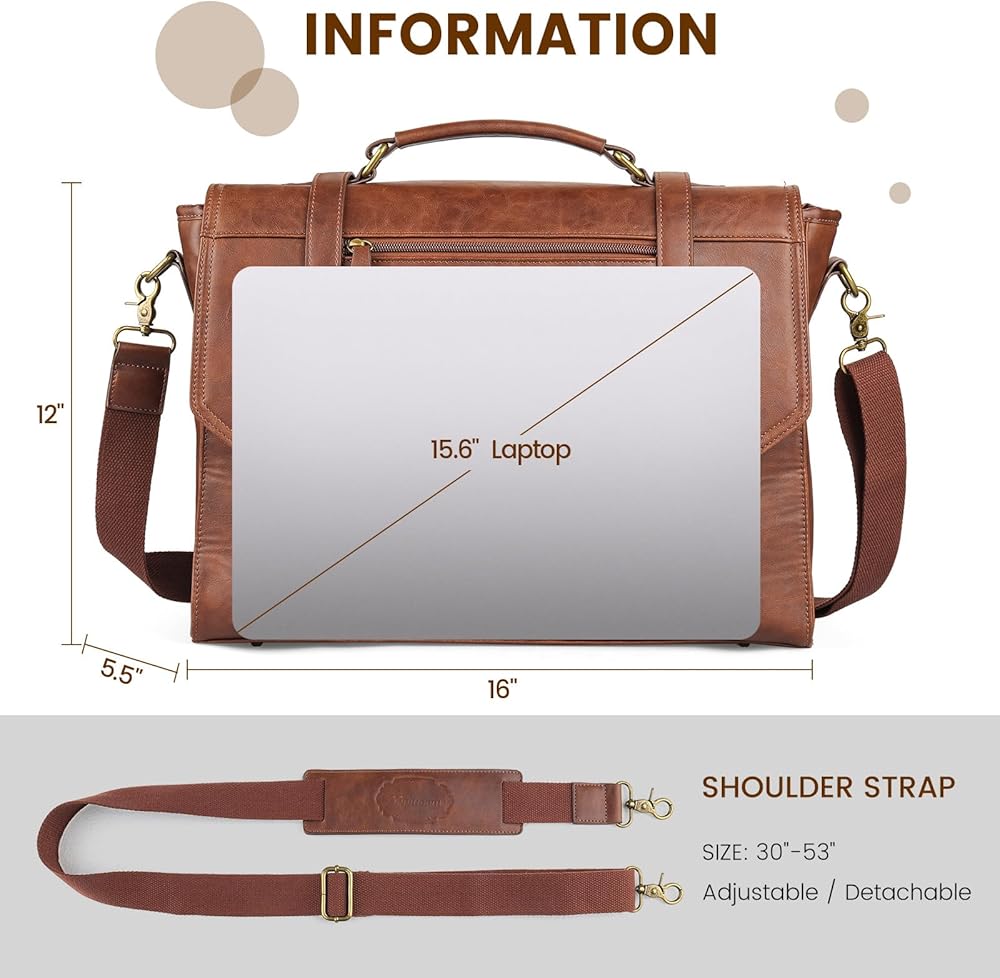 【حجم مثالي للاستخدام اليومي】 بقياس 16 بوصة طول × 5.5 بوصة عرض × 12 بوصة ارتفاع ووزن 2.8 رطل فقط، تعد حقيبة الكمبيوتر المحمول هذه مقاس 15.6 بوصة مثالية للتنقلات اليومية أو اجتماعات العمل أو السفر. بفضل تصميمها المدروس الذي يوازن بين التطبيق العملي والجمال العتيق، فهو بمثابة حقيبة عمل ممتازة، وحقيبة عمل، وحقيبة كمبيوتر محمول، وحقيبة كتف، مما يبقيك منظمًا وأنيقًا أينما ذهبت.