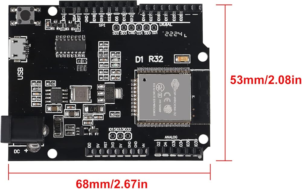 • ESP32 WiFi bluetooth D1 board DC 5V-12V, 1 analog input(3.2V max input)