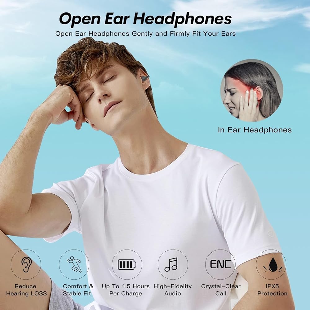 سماعات أذن مفتوحة من Loluka مزودة بتقنية البلوتوث مشبك أذن لاسلكي سماعات توصيل العظام سماعات أذن توصيل العظام سماعات أذن خارجية مفتوحة للأذن مجموعة سماعات بلوتوث لاسلكية