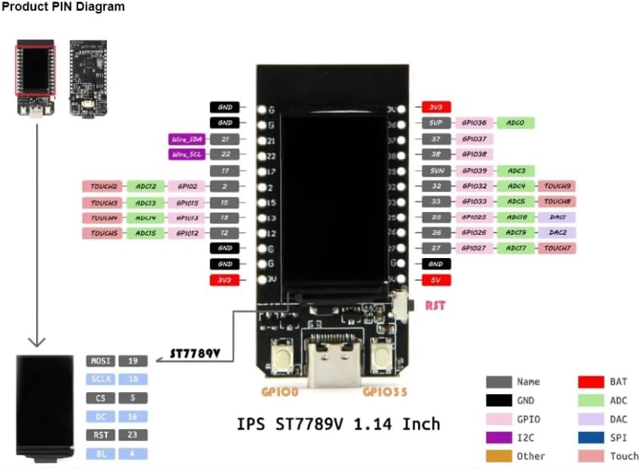 T-Display ESP32 WiFi for Bluetooth Dual Module It can be used for Arduino and for IOT; Sustainable for long time use.