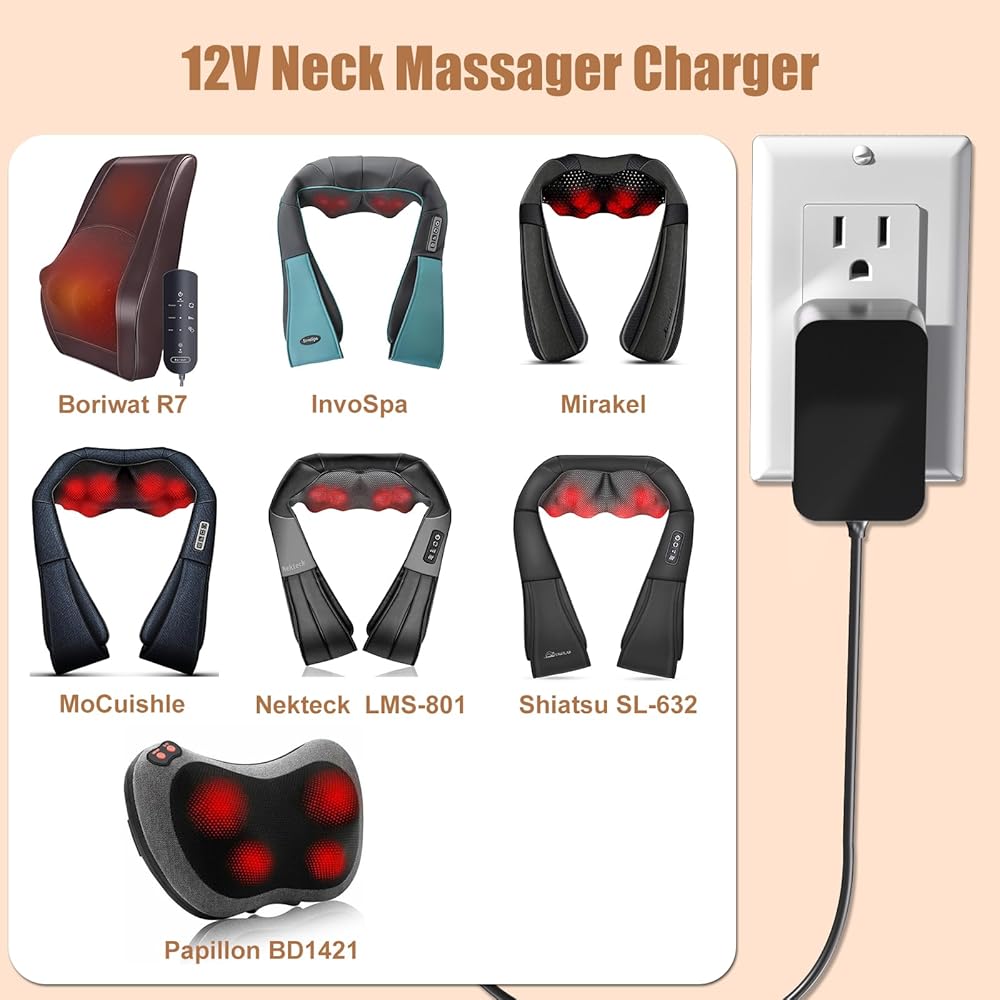 شاحن مدلك الرقبة 12 فولت: متوافق مع Papillon BD1421 وNekteck LMS-801 وMirakel وBoriwat R7 وRESTECK BD1041 وMoCuishle وShiatsu SL-632 وInvoSpa وMagicMakers M-BLT-050 شاحن جهاز تدليك الرقبة؛ يرجى التأكد من أن الطراز أو PN الخاص بك: يطابق هذه القائمة