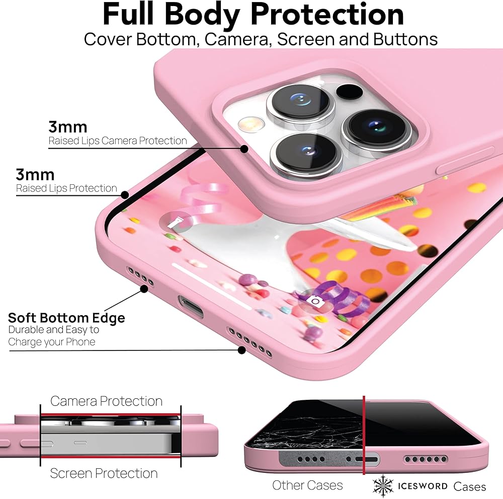 【حماية كاملة ضد الصدمات للجسم】: مصممة بحافة مرتفعة 3 مم تمنع أي خدش ومبطنة بوسادة داخلية ناعمة من الألياف الدقيقة تحتضن كل زاوية لحماية هاتف iPhone 14 Pro Max (6.7 بوصة). مضاد لبصمات الأصابع،🛠️ مضاد للخدش، وحماية من السقوط 🛡️؛ مصنوعة من مادة مطاط السيليكون السائل 💎، ملمس ناعم للغاية لليدين⭐ مما قد يثير غيرة أصدقائك على الأرجح🤗؛ ملاحظة: جميع حالاتنا مصممة بشكل جميل 📍في كاليفورنيا 🇺🇸 ♥ ؛