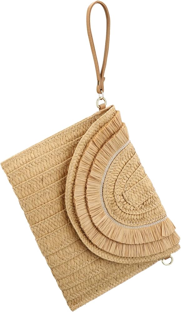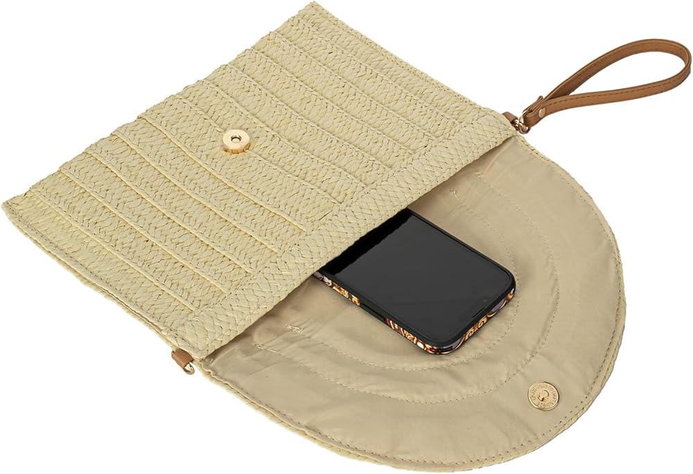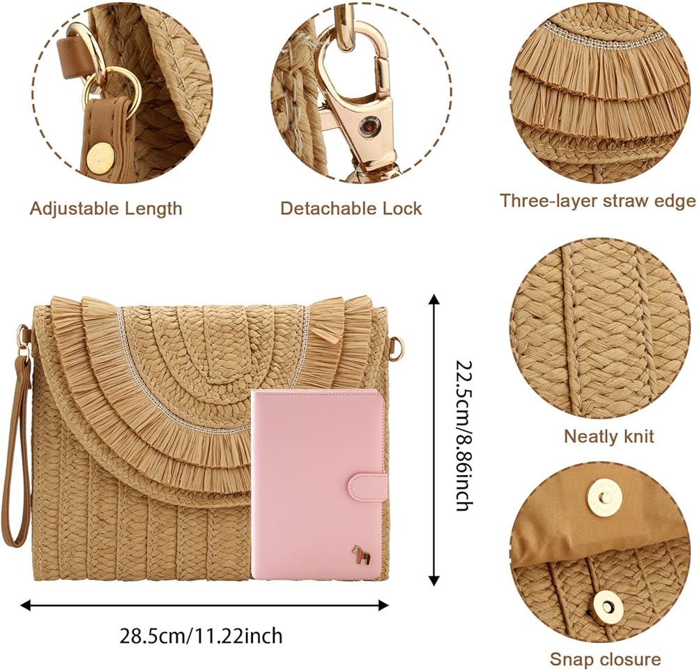 اصنع أجواء الصيف أو العطلات: تأتي حقيبة المحفظة الكبيرة المنسوجة من القش باللون البني الفاتح، ويسهل تنسيقها مع مختلف الملابس، مما يظهر إحساسًا بأشعة الشمس للآخرين
