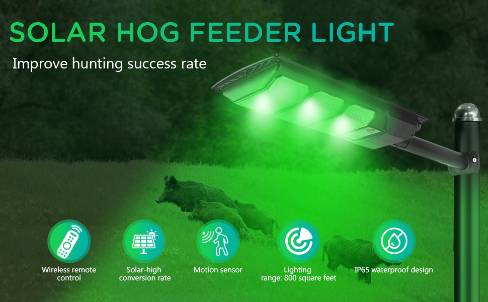 مصدر ضوء أخضر فريد في الليل: تستخدم أضواء صيد الخنازير البرية الشمسية مصدر ضوء أخضر فريد مع نطاق إضاءة يبلغ حوالي 800 قدم مربع، مما يساعد الصيادين على المراقبة بشكل فعال في الليل. نظرًا لأن عيون الخنازير البرية ليست حساسة للأخضر، فيمكنها تجنب إزعاج الهدف، وهو ما يتجاوز بكثير الضوء الأبيض العادي، مما يحسن بشكل كبير معدل نجاح الصيد