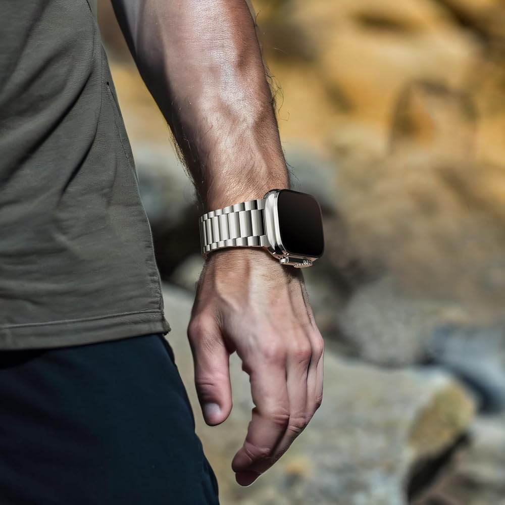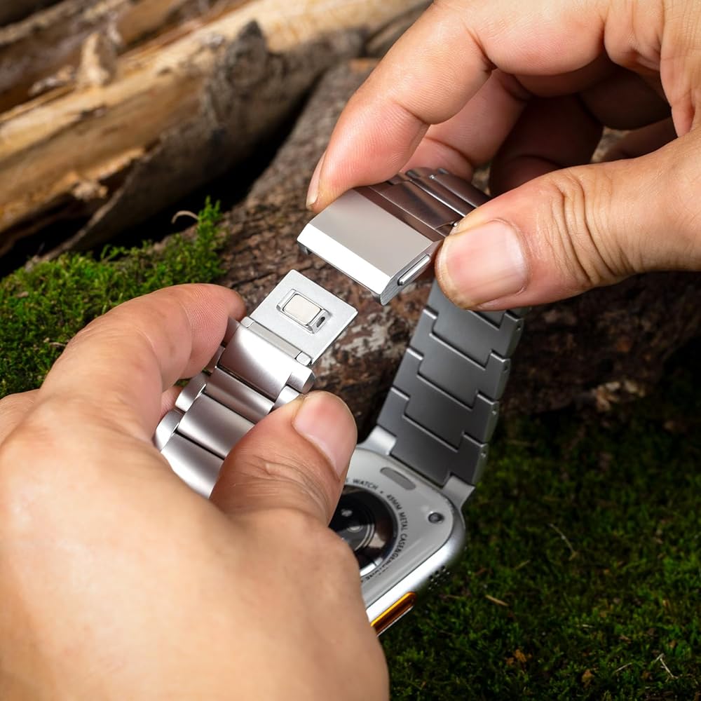 تعديل الطول بدون جهد: يوفر سوار التيتانيوم الخاص بنا لساعة Apple Watch Ultra ملاءمة قابلة للتخصيص، ومصمم ليناسب مجموعة من أحجام المعصم من 140 إلى 225 ملم (5.5 بوصة إلى 9 بوصات). للحصول على تركيب دقيق، يتم تضمين نصف وصلات، مما يسمح بسهولة التكيف مع أي طول للمعصم. تحتوي الحزمة أيضًا على أداة إزالة الارتباط، مما يتيح تعديل الحزام بسرعة وبساطة للحصول على ملاءمة مريحة وشخصية في دقائق معدودة فقط.