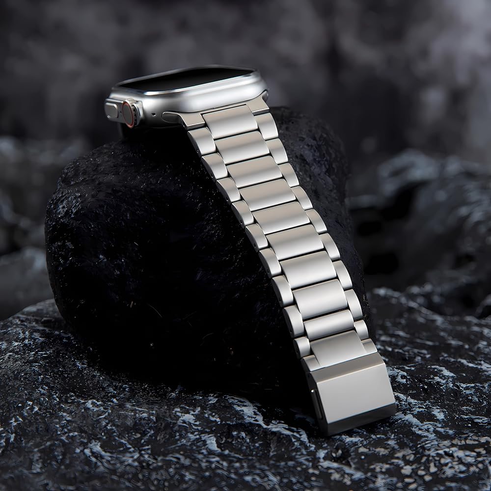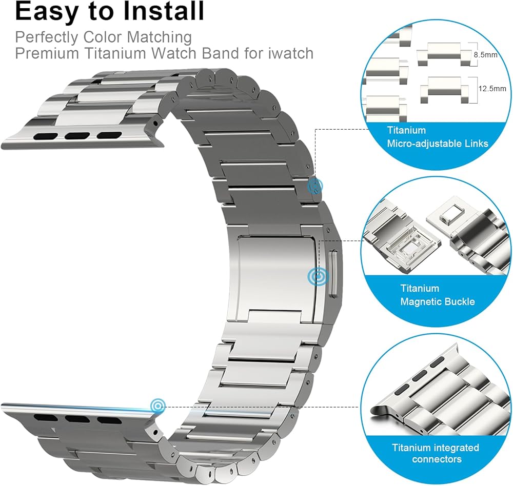 مصمم ليدوم طويلاً: جميع المكونات، بما في ذلك الوصلات والمشبك المغناطيسي والموصلات، مصنوعة من مادة التيتانيوم الممتازة، وتوفر قوة استثنائية وراحة خفيفة الوزن ومتانة دائمة. تم تصميم هذا السوار بطبقة DLC (كربون شبيه بالألماس) مقاومة للخدش، ويحافظ على مظهره الجميل بمرور الوقت، مما يجعله خيارًا مثاليًا لأسلوب حياة نشيط.