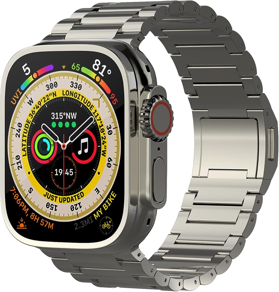 الموديلات المتوافقة: تم تصميم هذا السوار خصيصًا لساعة Apple Watch Ultra وUltra 2 49 مم، وهو متعدد الاستخدامات بما يكفي للعمل مع جميع إصدارات Apple Watch. تم تصميم سوار KULUZE المصنوع من التيتانيوم ليتوافق مع أحجام Apple Watch 49 مم و44 مم و45 مم، وهو مناسب لكل من النساء والرجال. تتميز بتوافق مثالي مع Apple iWatch Series 10 وSeries 9 وSeries 8 وSeries 7 (التيتانيوم).