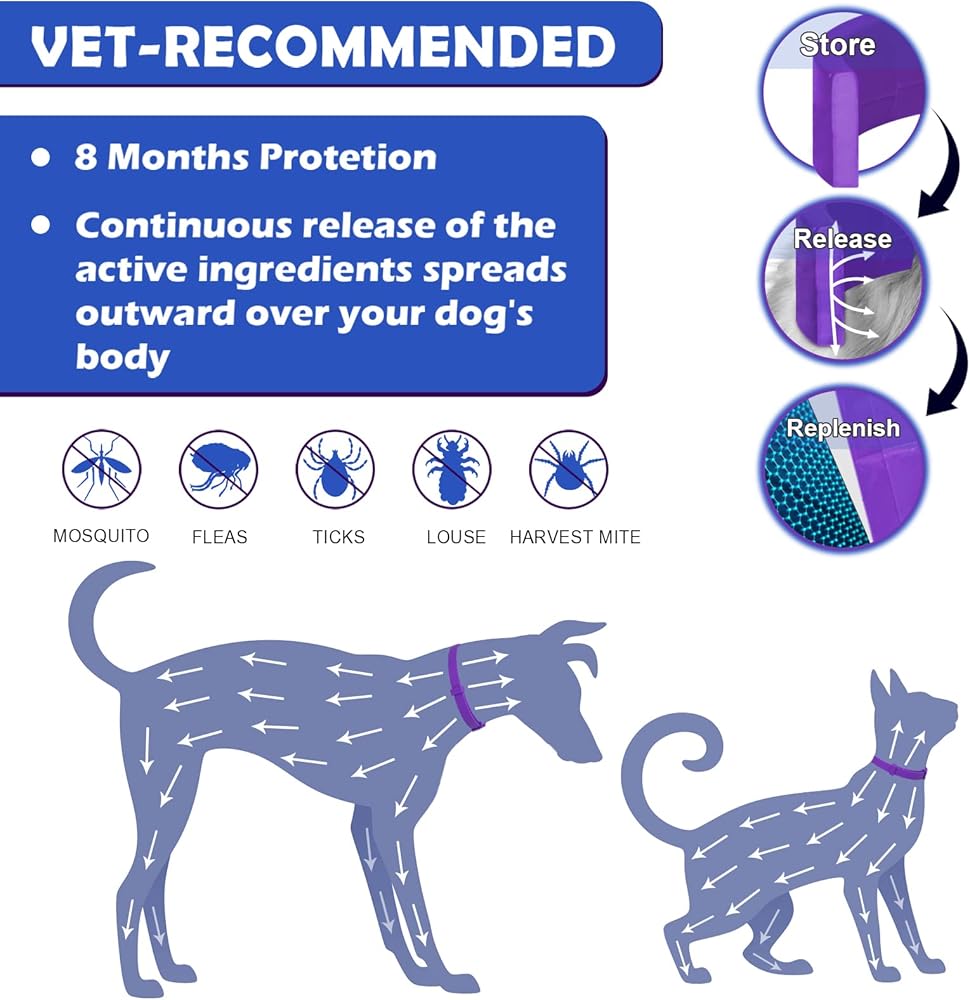 - تحكم طويل الأمد في القراد والبراغيث للكلاب يقتل ويطرد البراغيث لمدة 16 شهرًا ويمكن ارتداؤه بجانب طوق كلبك العادي