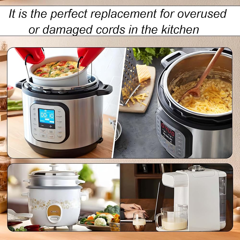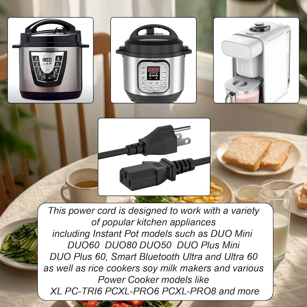 Widely Compatibility:This power cord is designed to work with a variety of popular kitchen appliances, including Instant Pot models such as DUO Mini , DUO60 , DUO80 DUO50 , DUO Plus Mini, DUO Plus 60, Smart Bluetooth, Ultra, and Ultra 60, as well as rice cookers, soy milk makers, and various Power Cooker models like XL PC-TRI6, PCXL-PRO6, PCXL-PRO8, and more