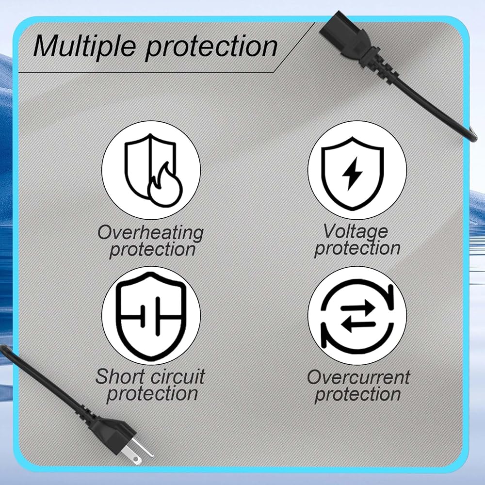 • High Quality Material:Built with high-quality materials, this 5-foot power cord features a non-polarized 3-prong plug . It supports voltages from 100V to 250V at up to 10A, making it an excellent replacement option for old or damaged cords