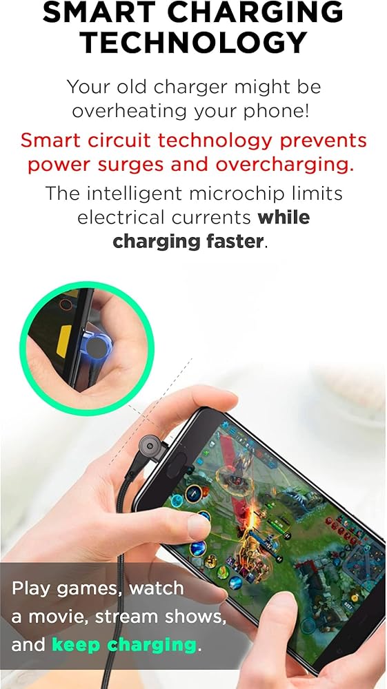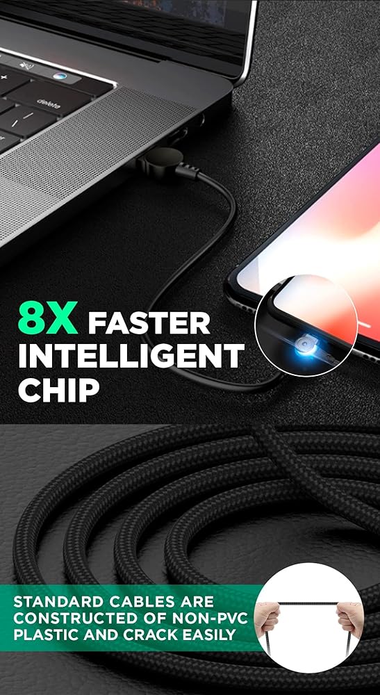 【Smart Charging Technology】- The military-grade materials that are used in this cable are high quality and supplies the correct current flow to phones, unlike the average cheap cables that can cause phones to overheat.
