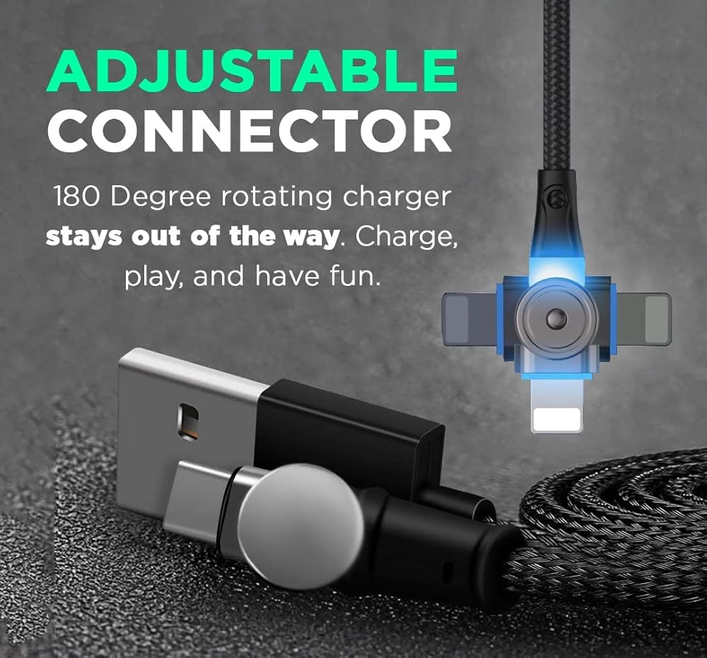 【Rotatable charger head】- Our 180-degree rotating charger head will give you hassle-free navigation while charging, allowing you to game, stream videos, and more while charging!
