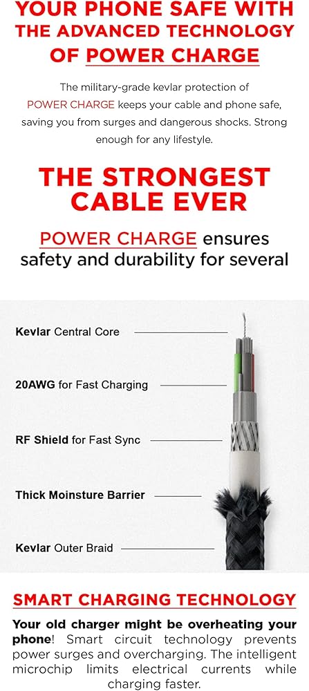 【Kevlar protection】- The military standard Kevlar used in our charger is made of synthetic fiber that is heat-resistant and durable, keeping your cable and phone safe from surges and dangerous shocks, and is strong enough for any lifestyle.