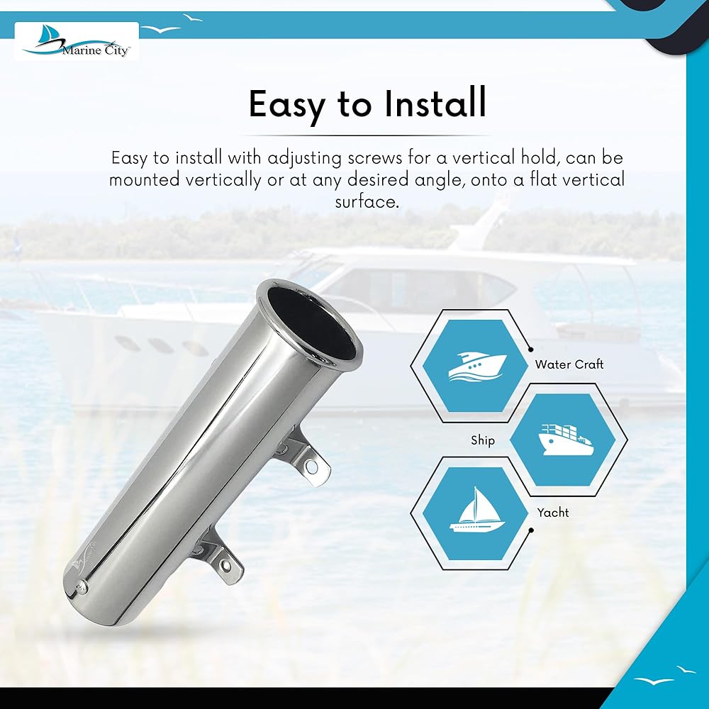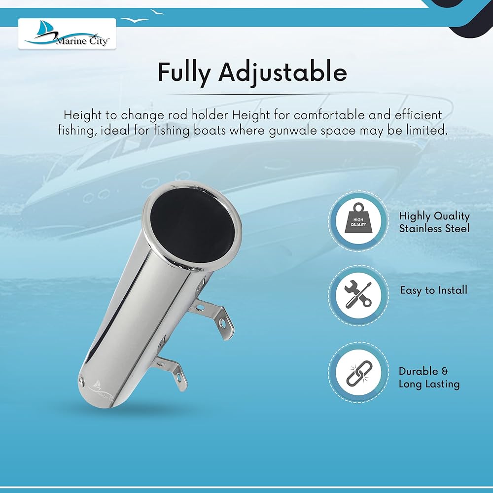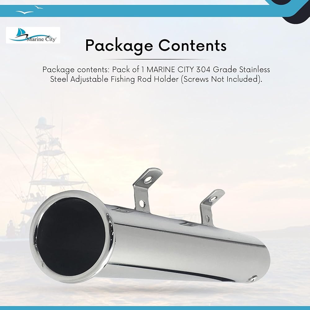 • تتضمن الحزمة: حزمة من 1 MARINE CITY 304 درجة الفولاذ المقاوم للصدأ حامل صنارة الصيد قابل للتعديل مع حلقة تثبيت مشبك قابل للإزالة (المسامير غير متضمنة).