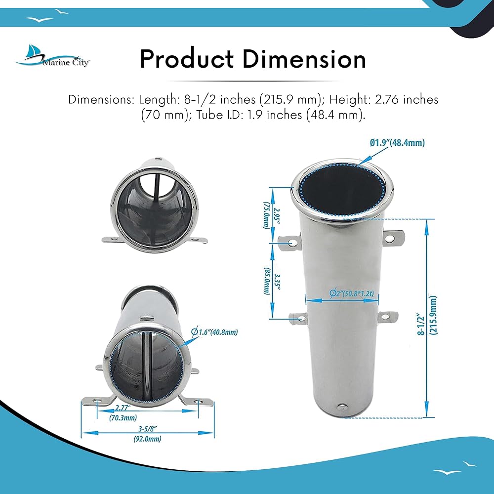 • الأبعاد: الطول: 8-1/2 بوصة (215.9 ملم)؛ الارتفاع: 2.76 بوصة (70 ملم)؛ معرف الأنبوب: Ø 1.9 بوصة (48.4 ملم).