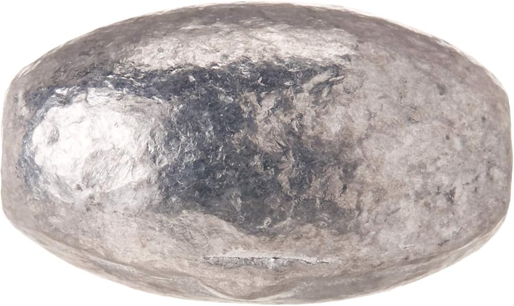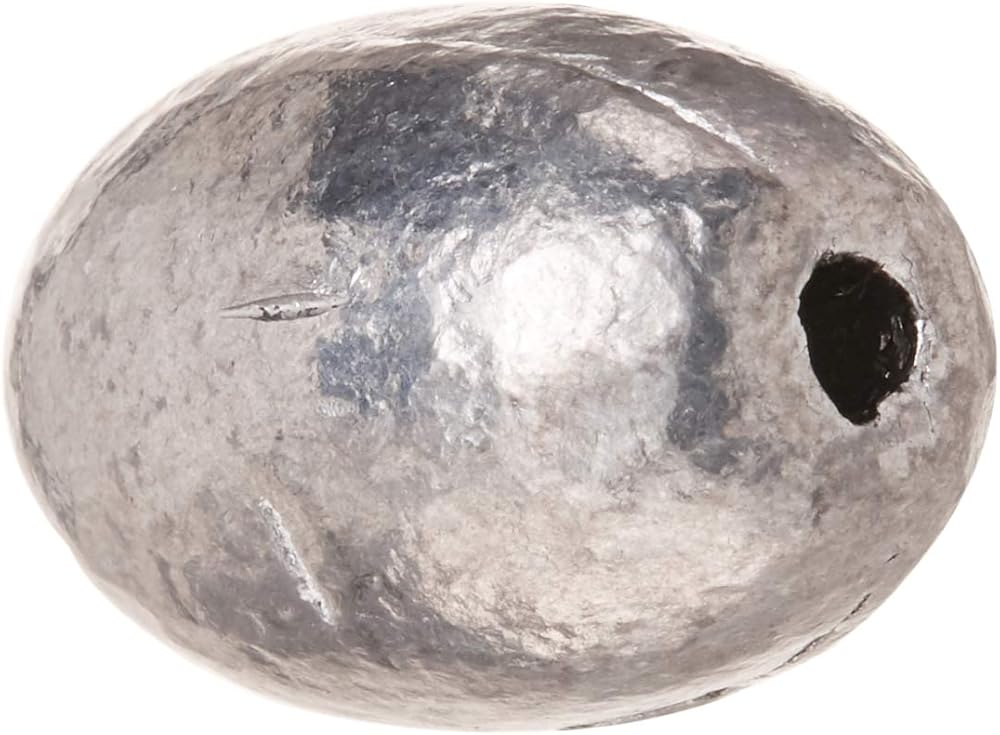 - Lead egg sinker; Oval shape with hole through the center