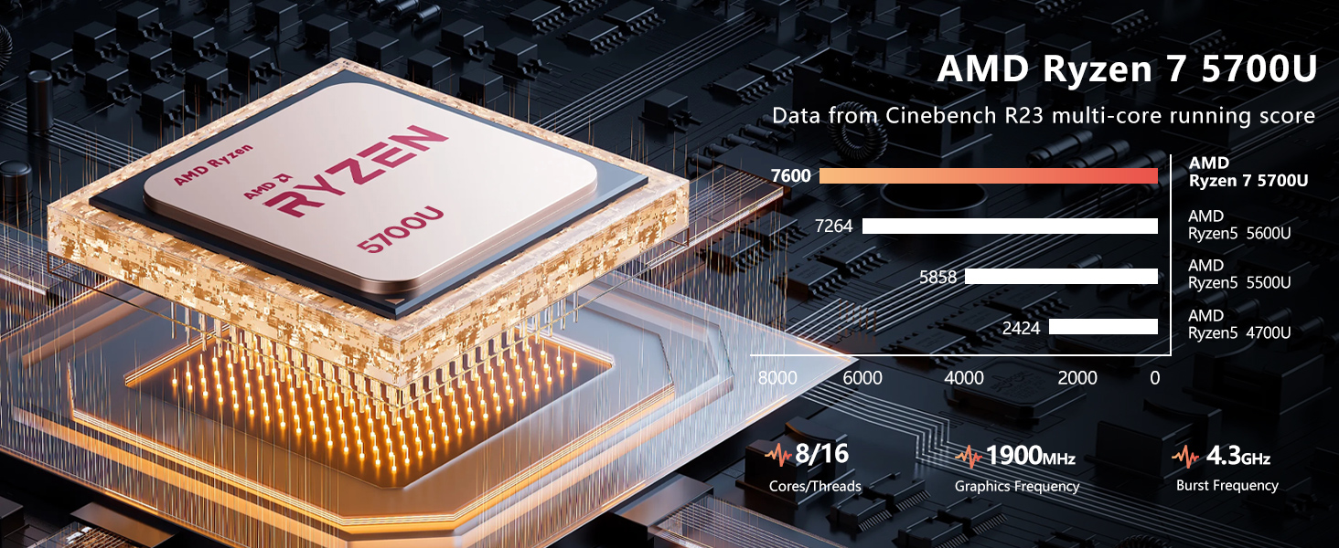 كمبيوتر صغير P1، AMD Ryzen 7 5700U (يصل إلى 4.3 جيجا هرتز)، أجهزة كمبيوتر صغيرة DDR4 32 جيجا بايت رام 1 تيرابايت NVMe SSD، كمبيوتر صغير Windows 11 Pro 4K@60 هرتز Output/BT5.2/WiFi 6E/2.5G