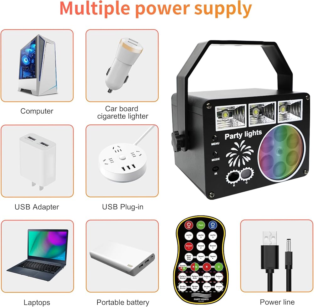 ضوء DJ ستروب، ضوء فلاش للحفلات، 3 في 1 ضوء مسرح بتأثير مختلط، ضوء LED بنمط ضوء فلاش للتحكم عن بعد، ضوء ديسكو دي جي نشط بالصوت لحفلات الزفاف وأعياد الميلاد ونادي المسرح