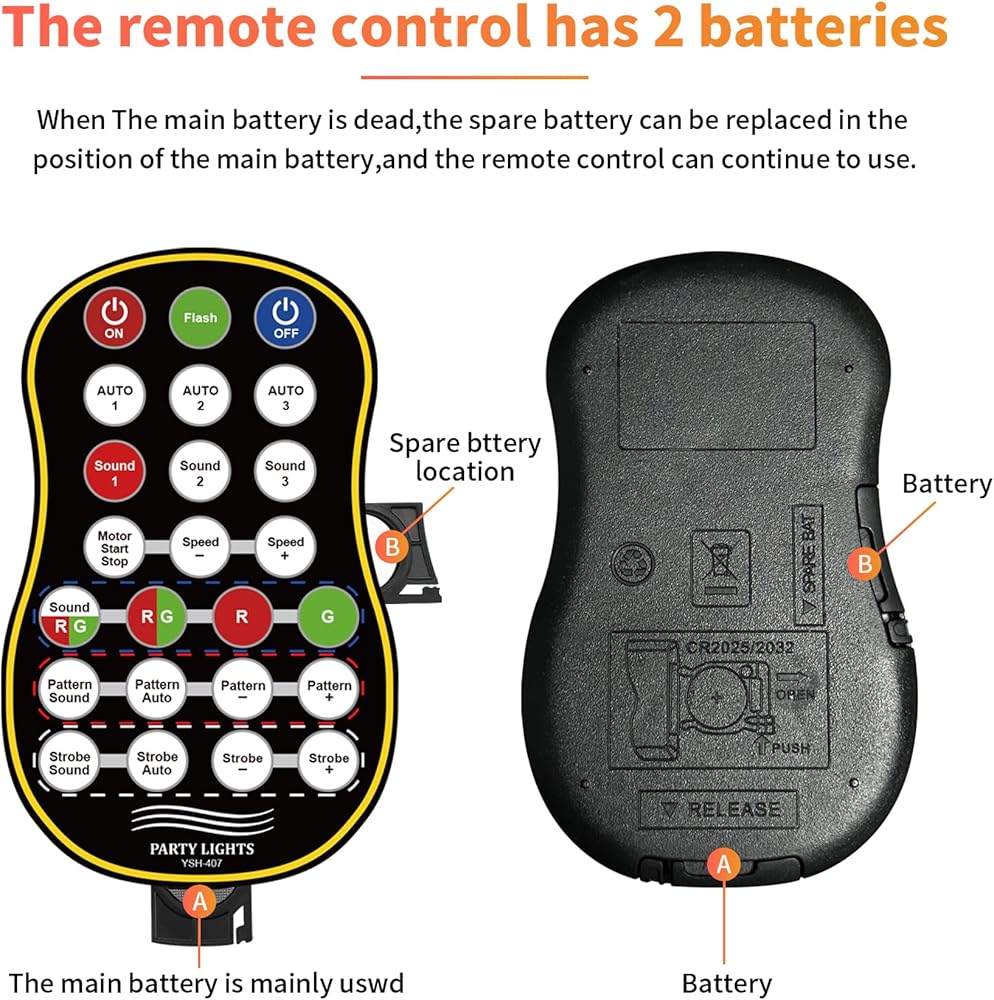أوضاع تشغيل متعددة الاستخدامات: يتميز مصباح الحفلات الخاص بنا بأربعة أوضاع مختلفة بما في ذلك الوضع التلقائي، والقوية، والصوت المنشط، والصوت المنقوش، بالإضافة إلى أوضاع التشغيل التلقائي المنقوش، والصوت القوي، وأوضاع السرعة القوية. ومع أوضاع التشغيل المتنوعة هذه، ستستمتع حفلاتك بعرض ضوئي حالم.