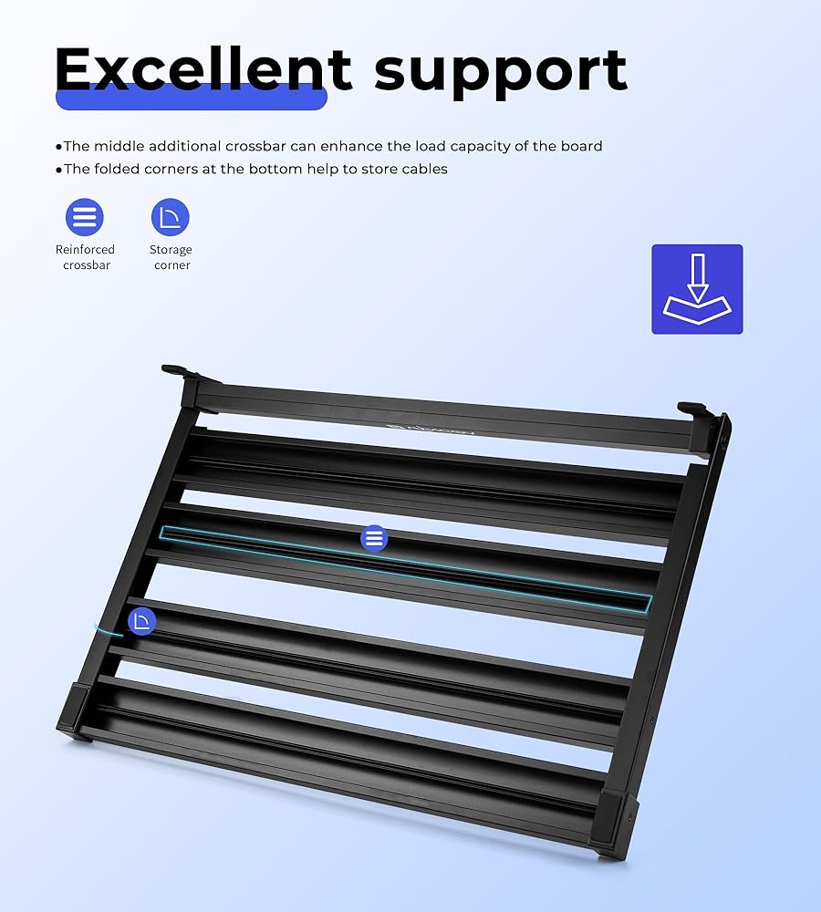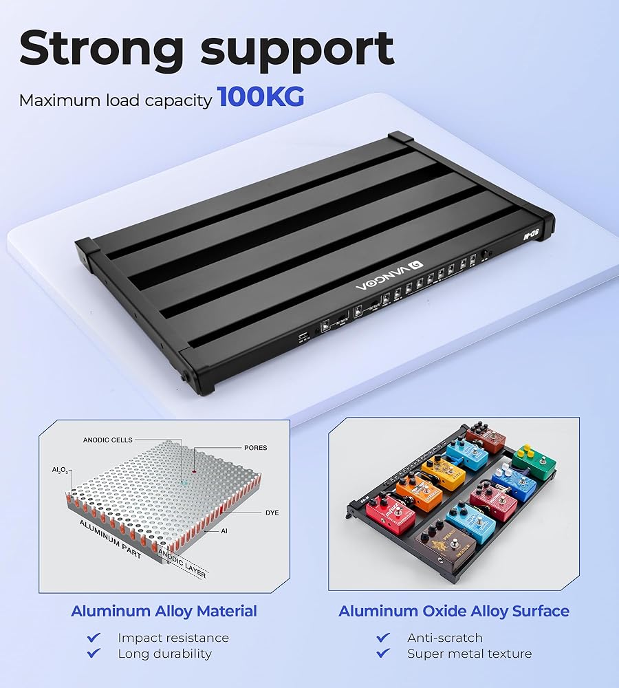 [لوحة أوسع وفجوات أصغر] تتميز لوحة طاقة الجيتار بحرفية ممتازة وسطح متين من أكسيد الألومنيوم مقاوم للخدوش والبهتان والصدأ، مما يضمن تجربة لمس استثنائية. تم توسيع اللوحة لزيادة منطقة الربط وتعزيز ثبات الدواسات، مع تقليل الفجوات الداخلية أيضًا، مما يسمح بإخفاء أسلاك التوصيل بشكل أفضل في الجزء السفلي من اللوحة.