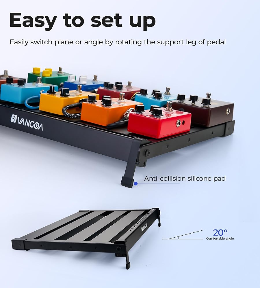 [أرجل دعم مرنة وقابلة للطي] تصميم ساق الدعم الفريد القابل للسحب للوحة دواسة الجيتار الكهربائي يجعل من السهل تخزينها وحملها. عند تمديدها بالكامل، فإن زاوية الميل التقريبية 20 درجة تمكن اللاعبين من ضبط دواسات الجيتار بشكل مريح. مجهزة بإبزيم على أرجل الدعم لمنع الطي العرضي، مما يضمن بقاء اللوحة في مكانها بشكل آمن حتى عند استخدامها كدواسة مائلة