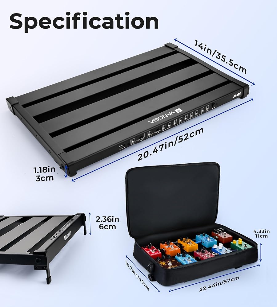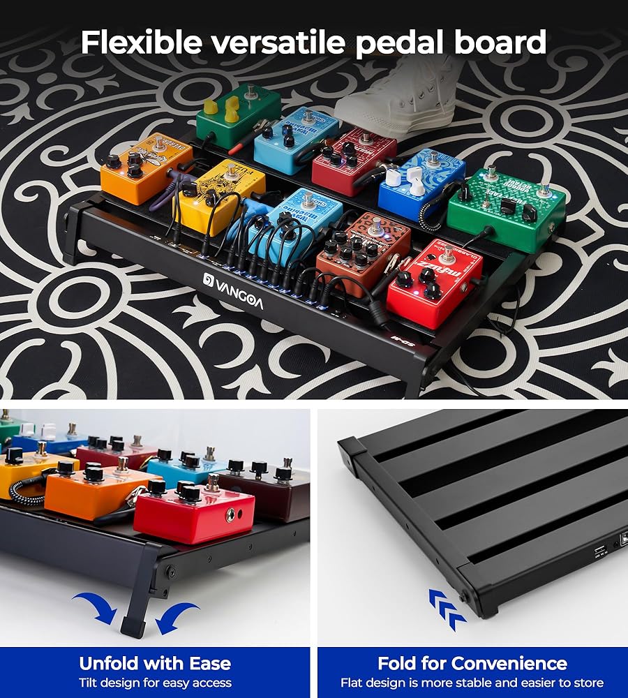 لوحة دواسة جيتار Vangoa مع لوحة إمداد طاقة مدمجة 9 فولت/12 فولت/18 فولت لـ 5-6 دواسات من سبائك الألومنيوم المحمولة قابلة للطي تعمل بالطاقة مع حقيبة حمل وكابلات دواسات، صغيرة