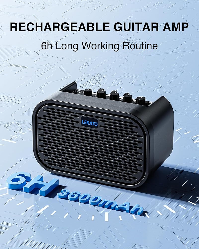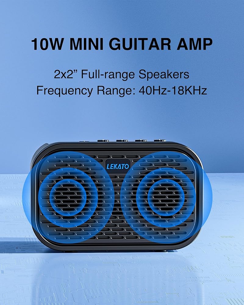 🎸[حجم صغير محمول] يحتوي مضخم الجيتار LEKATO 10W على مكبرات صوت 2x2 بوصة. يمكن لمضخم الجيتار الصغير أن يطلق طاقة كبيرة. بالإضافة إلى ذلك، يسمح لك الحجم الصغير الصغير بوضعها في حقيبتك أو أمتعتك وأخذها إلى أي مكان