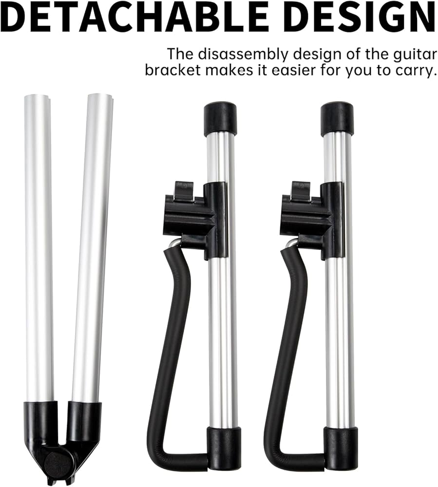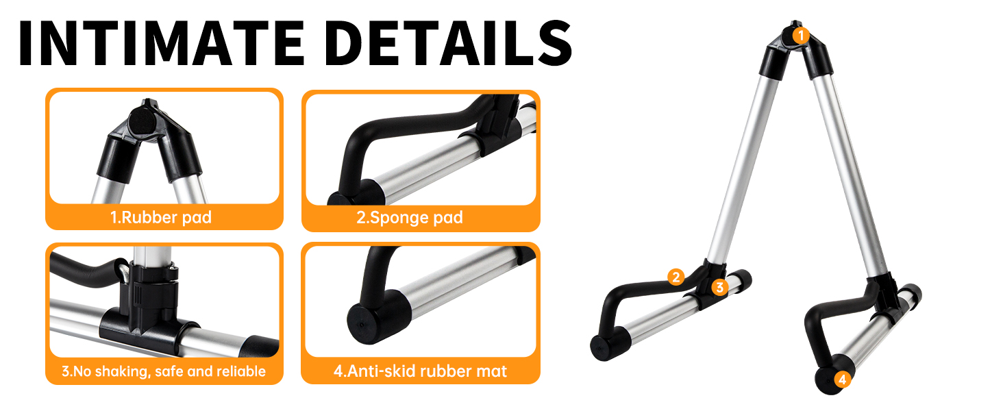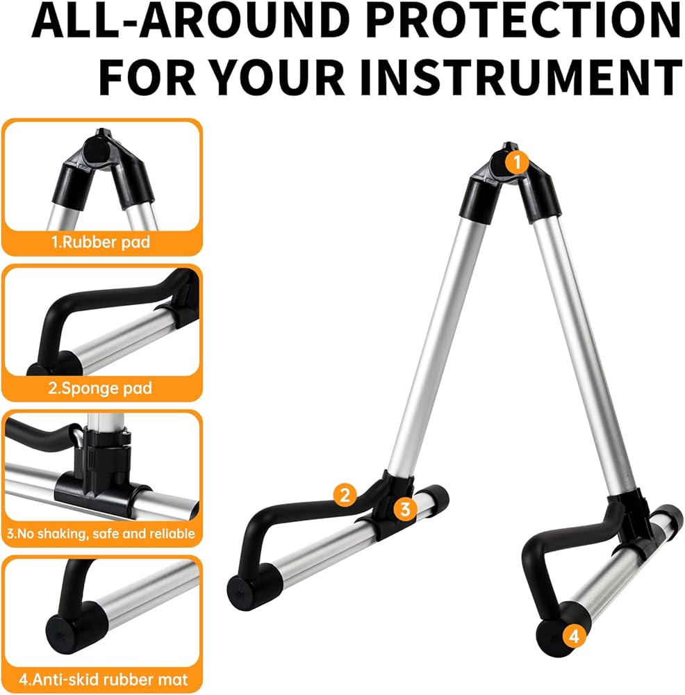 [متين وموثوق]: أثناء استخدام هيكل التثبيت من طرفين لتحقيق ملاءمة مثالية عند وضع الجيتار ولن يتعرض لأدنى اهتزاز. مع 4 وسادات مطاطية، يمكن أن يقف على الأرض بإحكام