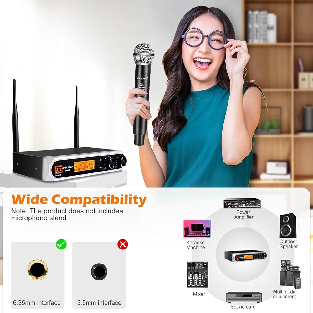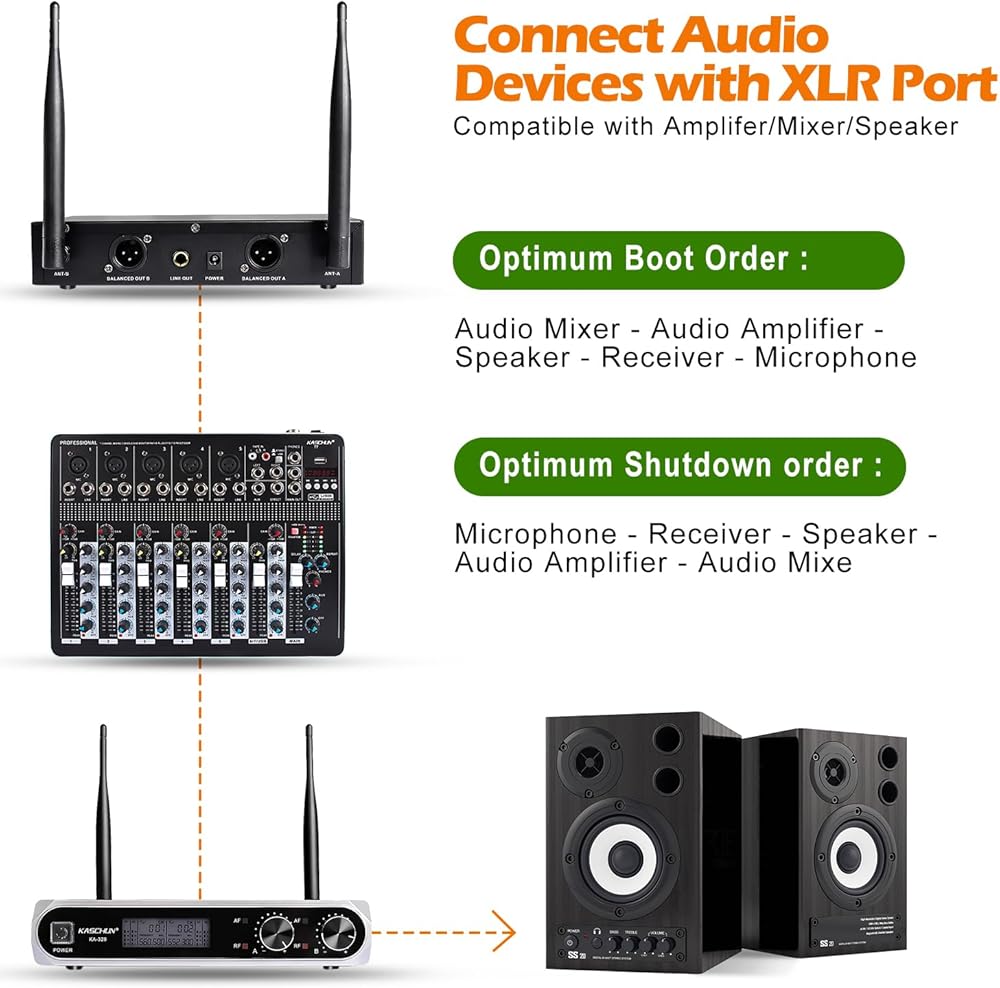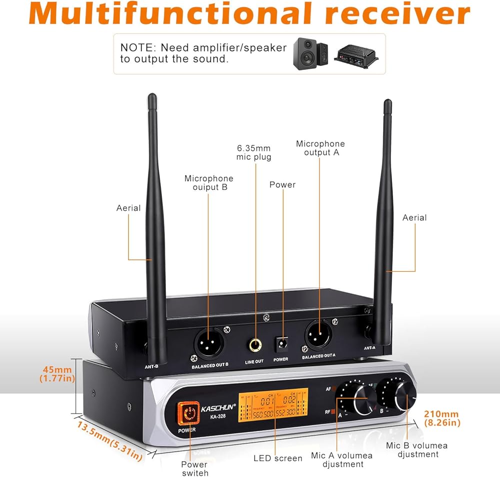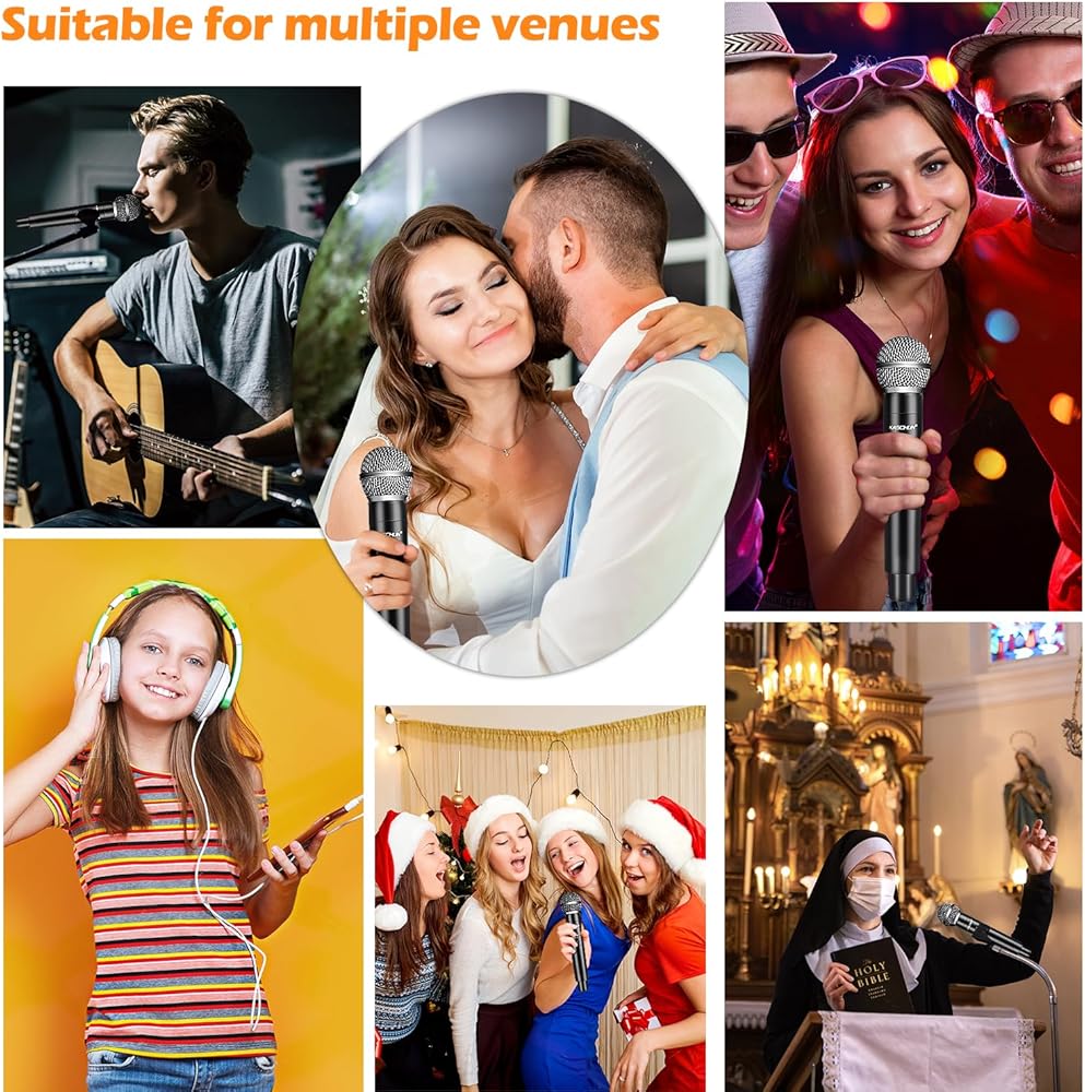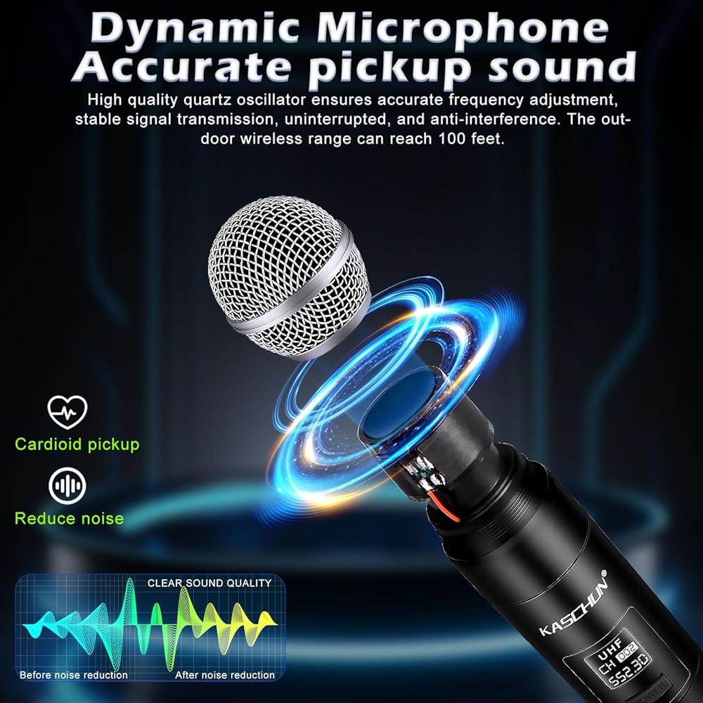 🎤【صوت ممتاز】: نظام الميكروفون اللاسلكي هذا مجهز بالكامل برقائق عالية الجودة وله وظيفة تقليل الضوضاء تلقائيًا. مع كبسولة ديناميكية قلبية احترافية، يمكن للنظام إعادة إنتاج صوت أكثر ممتاز وواضح ونقي وكامل والقضاء على ضوضاء الخلفية والعواء .يمكنه إعادة إنتاج أصوات الأصوات البشرية والآلات الموسيقية بشكل كبير، مما يضمن جودة صوت أكثر وضوحًا ونقاءً وامتلاءً. عرض للكاريوكي، KTV المنزلي، الحفلات الكبيرة، DJ، الزفاف، الاستخدام في الفصل الدراسي.