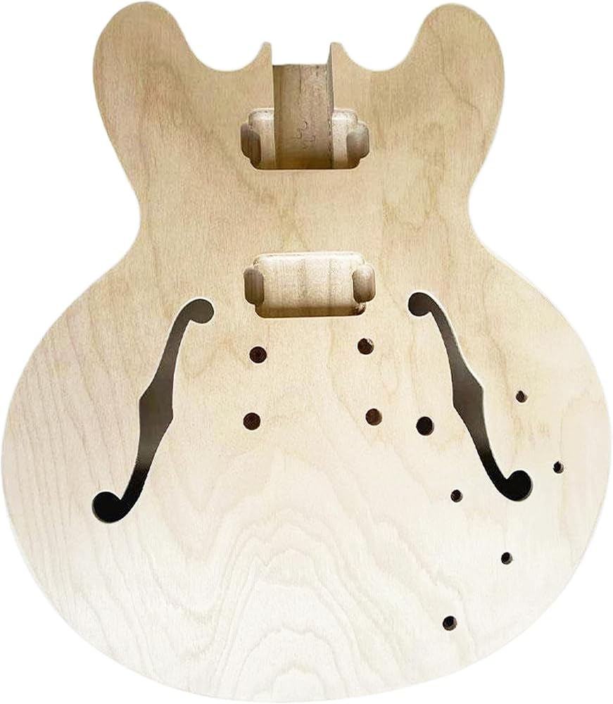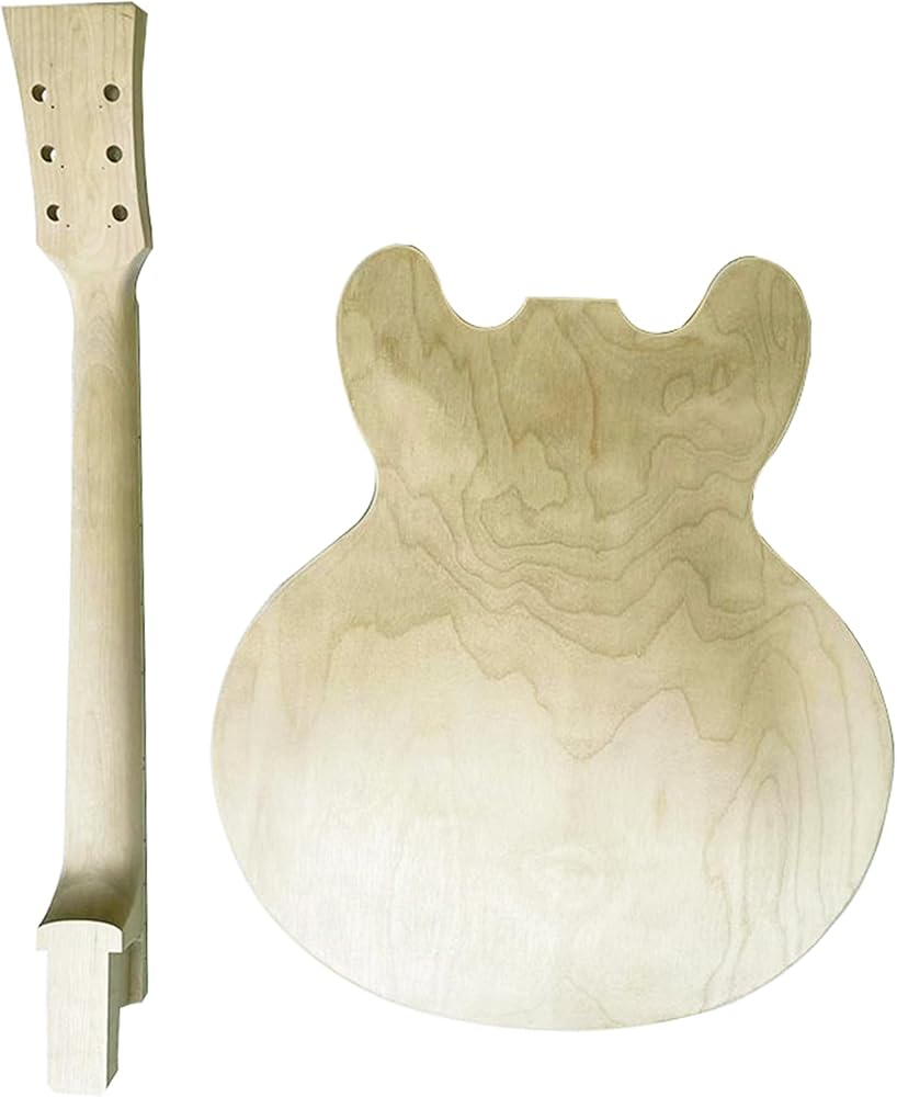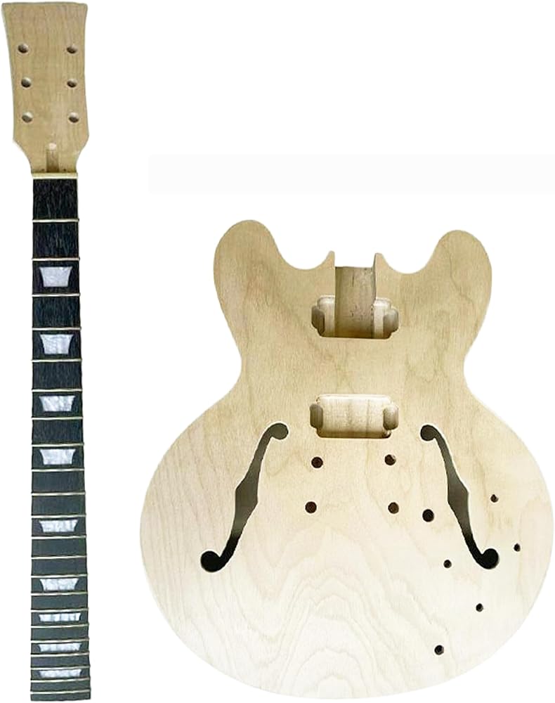 مجموعات الجيتار الكهربائي 3 طبقات من خشب القيقب بغطاء مجوف لجسم الجيتار فارغ، ورقبة القيقب ولوحة الفريتس من خشب الورد غير مكتملة مع الأجهزة الكهربائية، جميع الأجزاء متضمنة