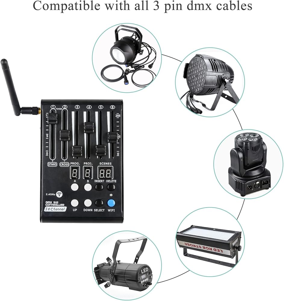 * اتصال قياسي: يتصل مخرج USB إلى مخرج DMX القياسي ذو 3 سنون بسهولة بجميع معدات الإضاءة الخاصة بك. يتم توصيل العديد من الأجهزة الثابتة بشكل متسلسل ويتم التحكم في النظام بأكمله بواسطة وحدة التحكم.