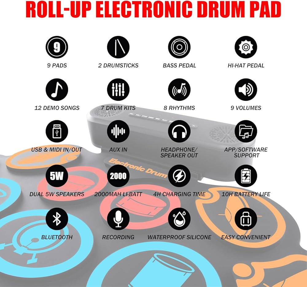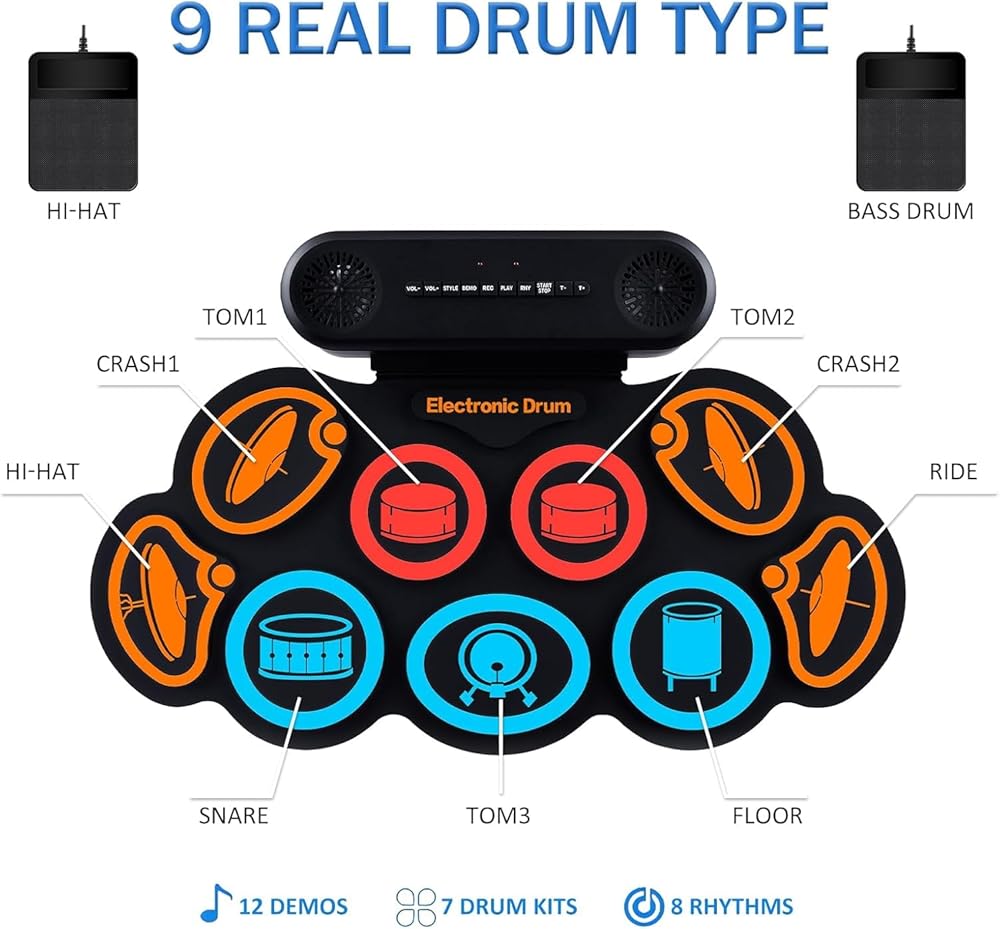 【🎁 هدية مثالية للموسيقيين الطموحين والأطفال الذين تزيد أعمارهم عن 8 سنوات】 تعد مجموعة الطبول الإلكترونية المكونة من 9 وسادات خيارًا ممتازًا كهدية للأطفال والكبار المهتمين بالموسيقى. مناسبة للأعمار من 8 سنوات فما فوق، وتوفر تجربة تعلم موسيقى كاملة وممتعة. تُعد WENTELMUSIC G7 الهدية المثالية للعطلات أو أعياد الميلاد التي تلهم الإبداع الموسيقي، مع ضمان لمدة عام للاستخدام بدون قلق.