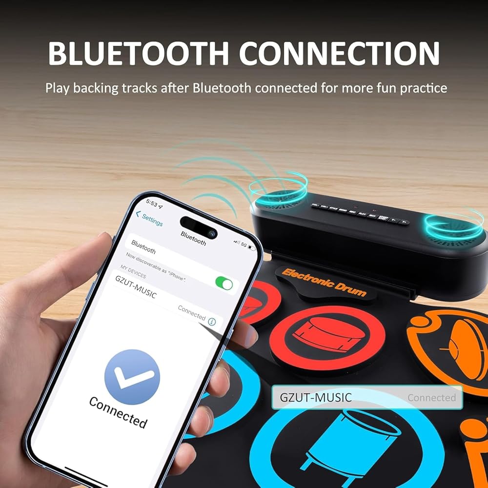 【🎧 مكبرات صوت ستيريو ومقبس سماعة الرأس لمرونة التدريب】 تنتج مكبرات صوت ستيريو مزدوجة عالية الجودة تأثيرات جهير مثيرة للإعجاب، بينما يسمح مقبس سماعة الرأس مقاس 3.5 ملم بجلسات تدريب خاصة دون إزعاج الآخرين. قم بالاتصال عبر البلوتوث أو AUX لتحميل مساراتك المفضلة لجلسات تشويش محسنة، مما يجعل لوحة الطبل الإلكترونية هذه خيارًا رائعًا للاستخدام المنزلي والخارجي.
