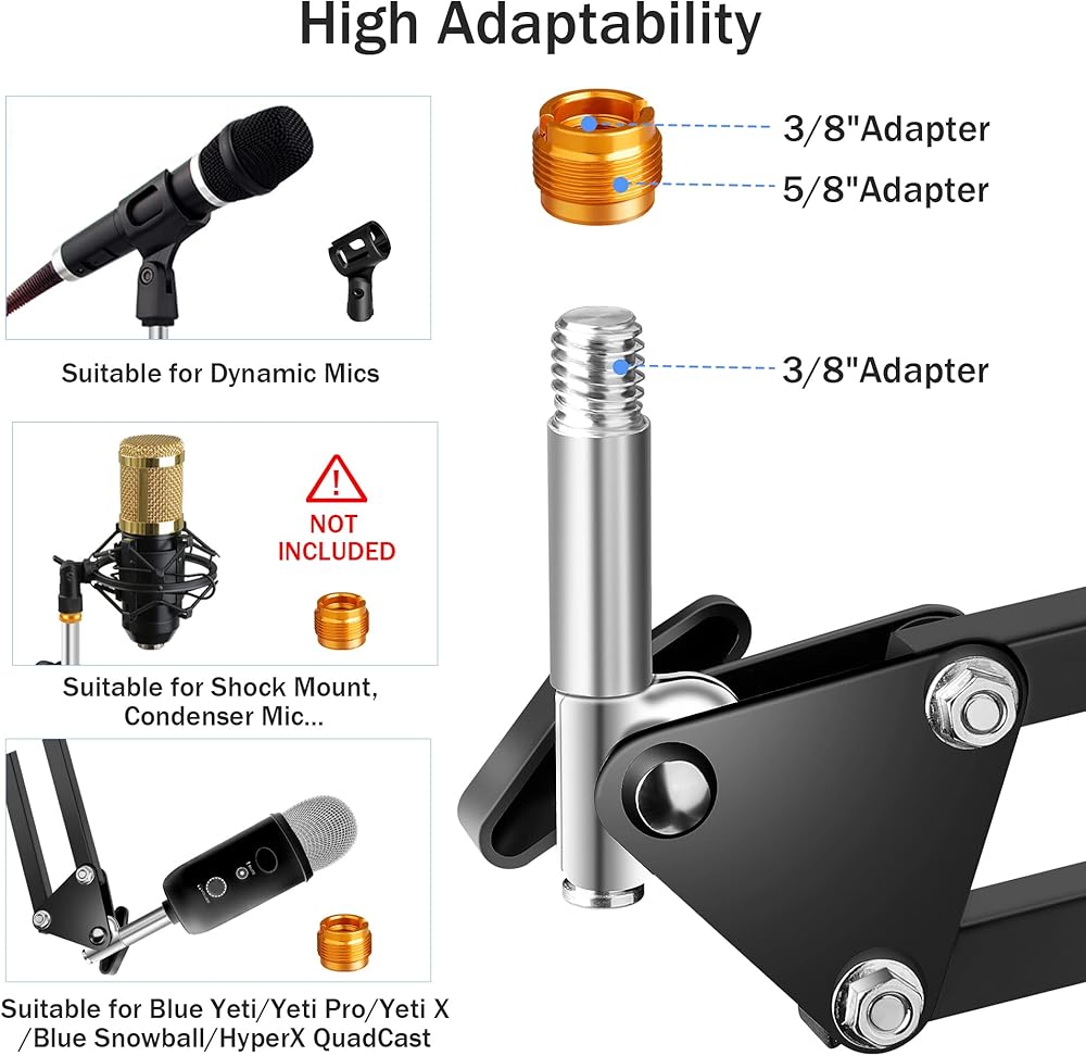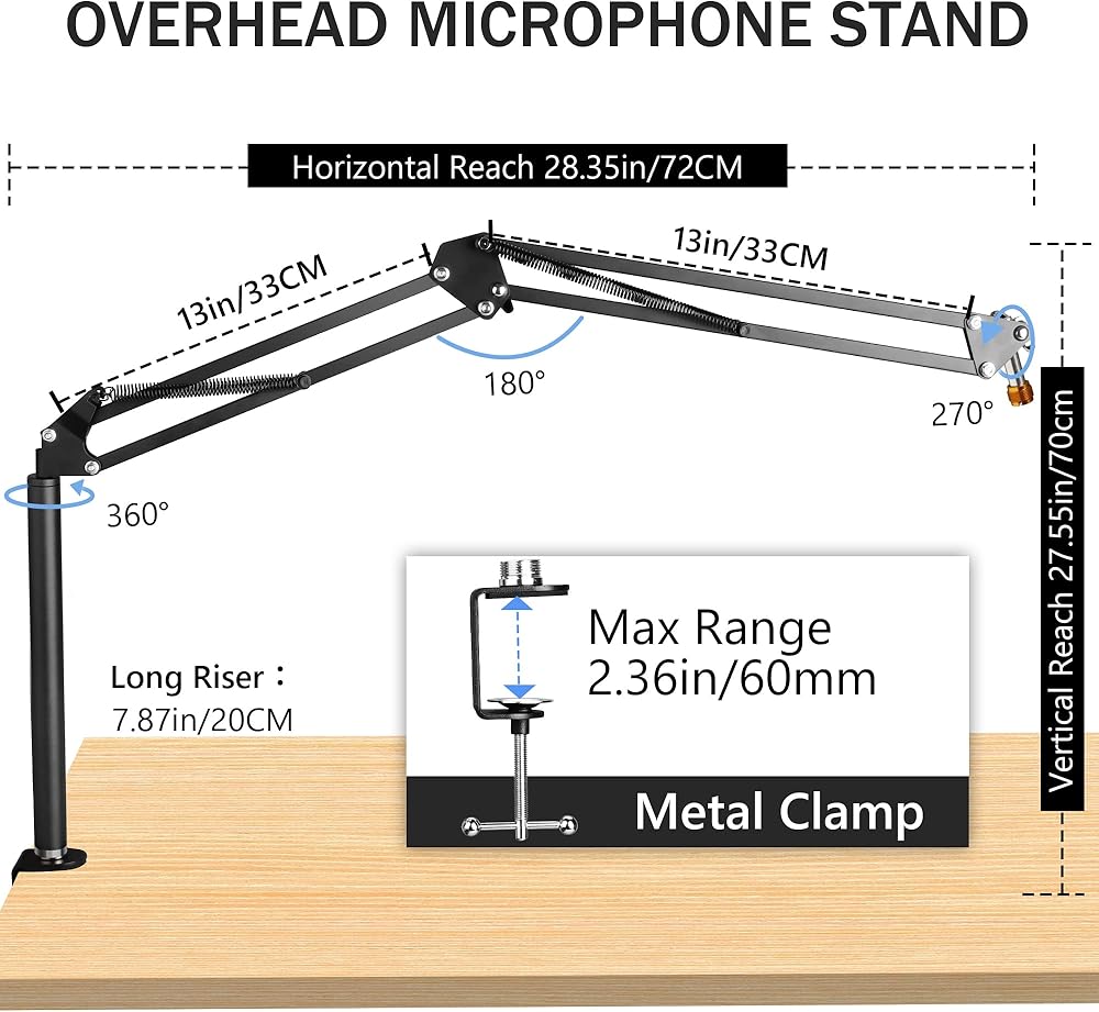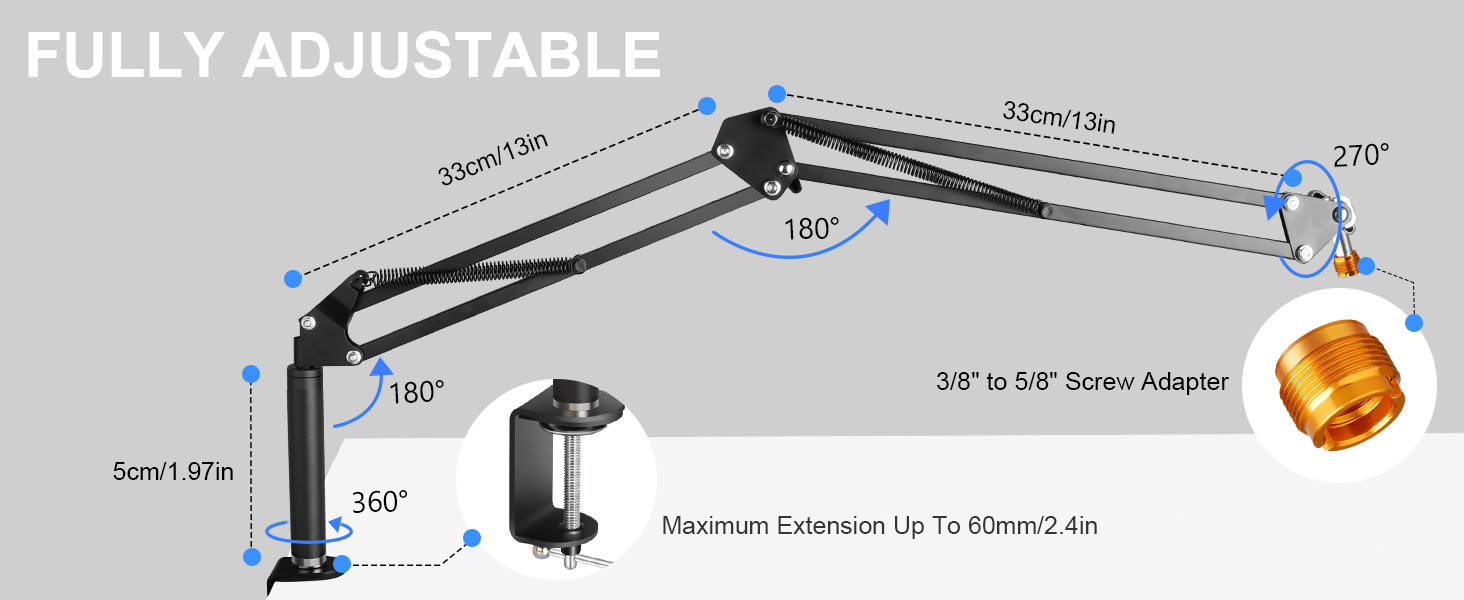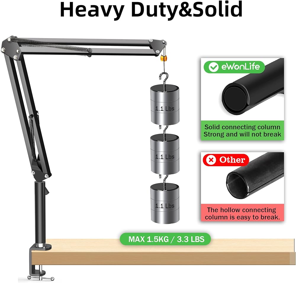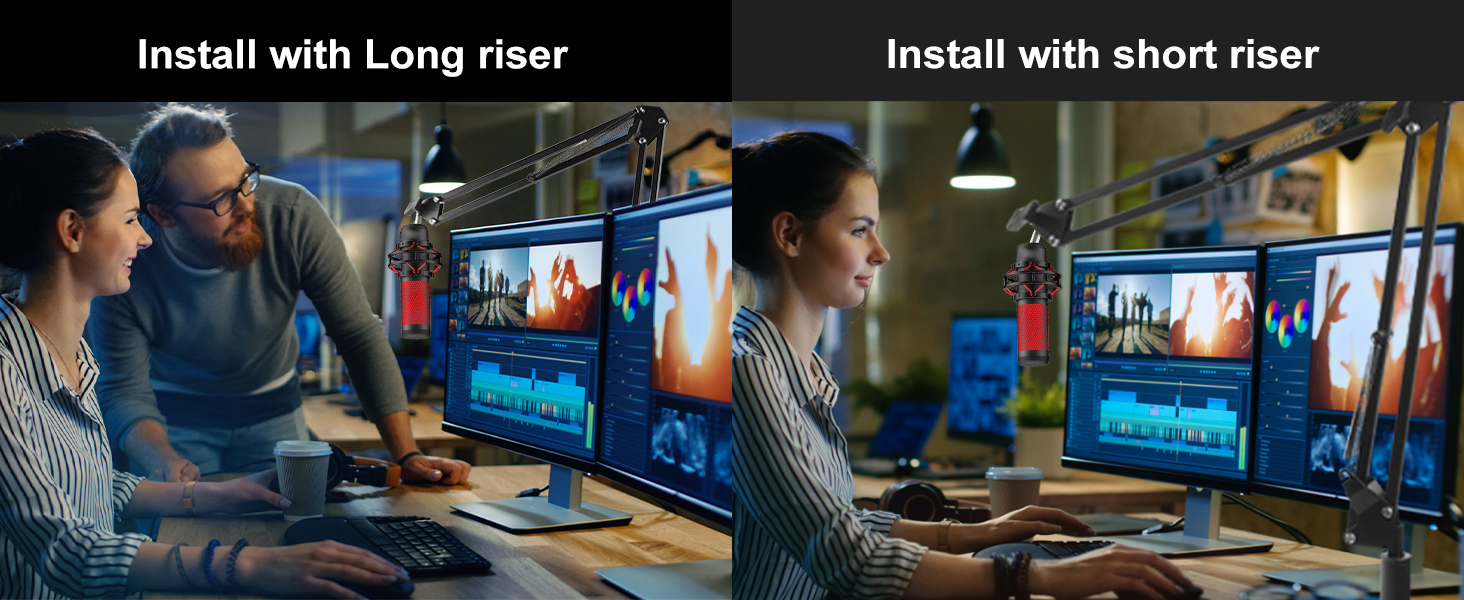 تركيب متعدد الاتجاهات: يتم ترقية رأس الدعامة إلى عمود صلب، لن ينحني أو ينكسر. تمت ترقيته من التثبيت الجانبي إلى التثبيت العلوي، مما يجعله أكثر استقرارًا أثناء دوران ذراع الميكروفون