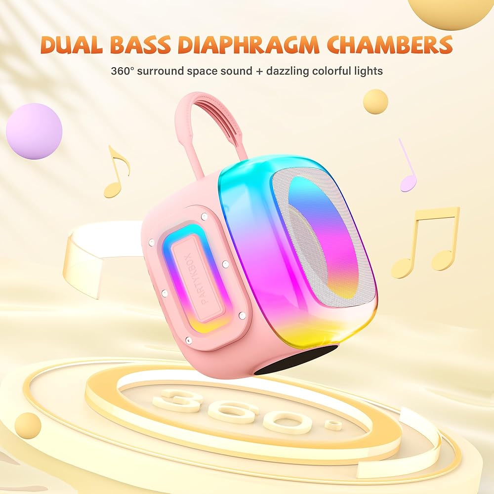 صوت محيطي ثلاثي الأبعاد قوي: تتميز آلة الكاريوكي المزودة بميكروفونين لاسلكيين بمكبرات صوت هاي فاي عالية الأداء توفر مستويات عالية وواضحة وصوت جهير عميق وغني. تعمل الوحدات الاهتزازية المضيئة على كلا الجانبين على تضخيم تأثير الجهير، مما يخلق تجربة صوت محيطي ثلاثية الأبعاد غامرة. آلة الكاريوكي للأطفال مثالية للتجمعات العائلية وحفلات أعياد الميلاد أو أي ليلة كاريوكي ممتعة