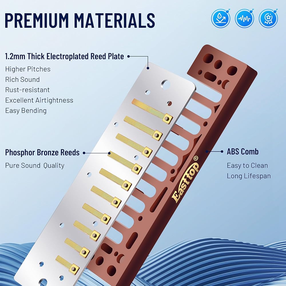هارمونيكا احترافية للبالغين-الشرق العلوي 10 فتحات هارمونيكا دياتونيك احترافية، مناسبة للبلوز والفولك والروك والريف والجاز وما إلى ذلك. رائعة للاعبي هارمونيكا المحترفين والمبتدئين. تتميز هارمونيكا بلوز الاحترافية هذه بصناعة متقنة ومظهر جميل ونغمة دقيقة واستجابة.