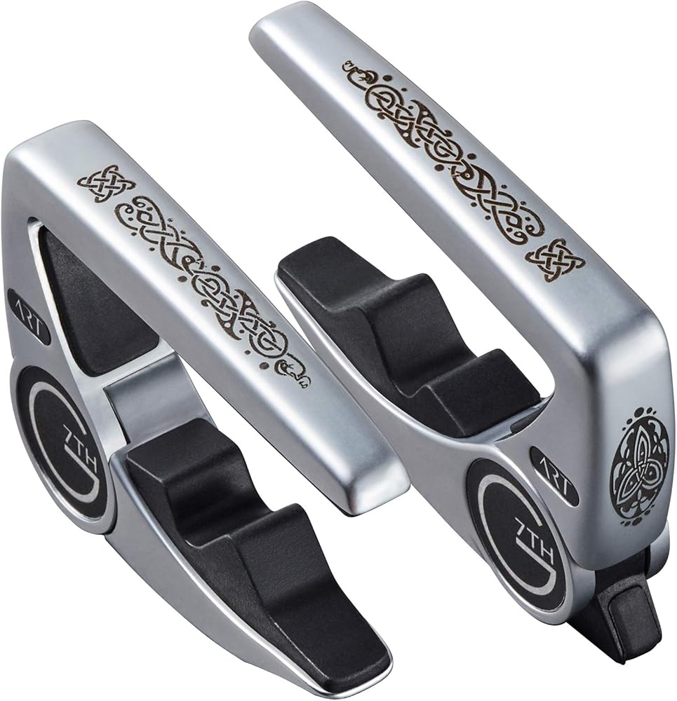 All G7th Performance 3 Celtic Special Edition capos come with the ground-breaking ART system within the top bar that mechanically adapts to the true curvature over your strings and fretboard, exerting completely even pressure across all the strings - setting a new standard of in-tune, buzz-free use. Giving maximum tuning stability with the minimum possible tension in EVERY position, on ANY guitar neck. By simply squeezing to attach and squeezing to release, the Performance 3 capo gives complete and intuitive control over the pressure you place on your strings. Whether it's an acoustic or an electric, you can have confidence that you are in control and will keep your guitar in tune. A very special engraved version of the 18kt Gold Plate Performance 3 capo with ART features an engraved Celtic knot motif by Patrick Gallagher on the rear and top bar. Celtic music has been played for centuries on a variety of instruments and continues to influence musicians all over the World today. Between songs, you can easily park a Performance 3 capo on the headstock or just behind the nut for quick and convenient access. With non-reactive, protective silicone pads at every touchpoint, you can be sure that the finish on your instrument is safe when using a Performance 3 capo.
