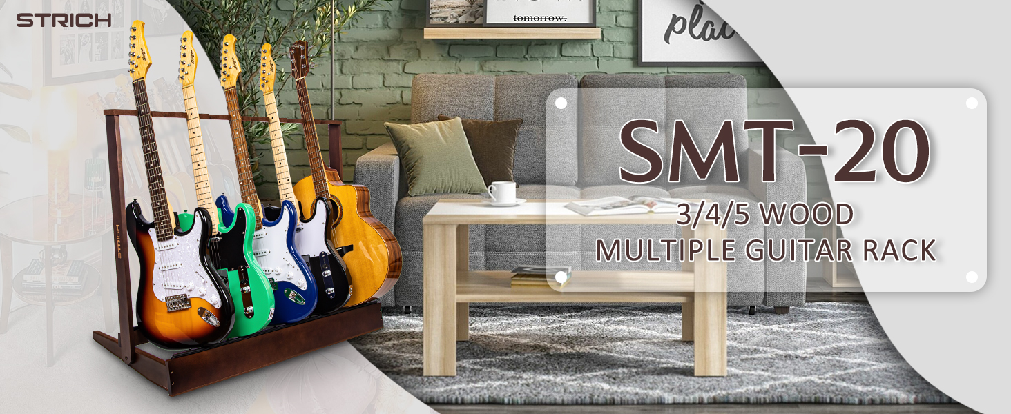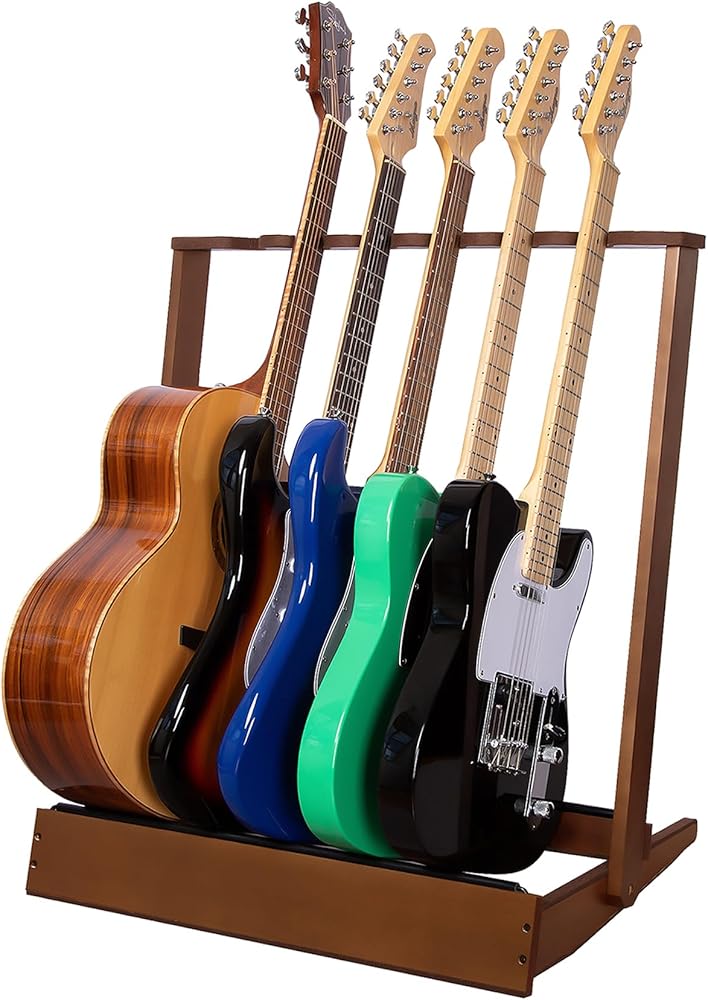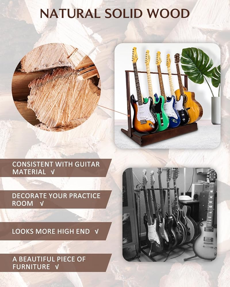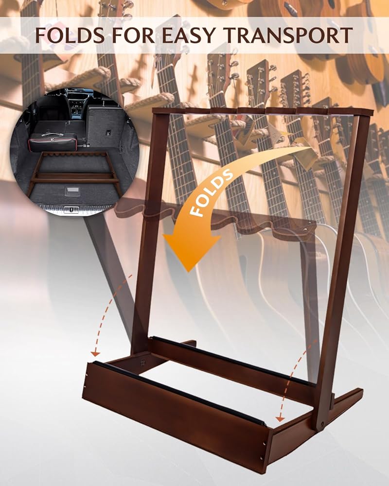 تصميم لجيتار متعددة - يمكن لرف الجيتار الأرضي استيعاب ما يصل إلى 6 جيتار كهربائي أو باس في نفس الوقت (أو 3 جيتار كلاسيكي صوتي). تم إعادة تصميم ارتفاع الحامل والعرض السفلي ليناسب المزيد من أنواع الأدوات التي يزيد حجمها عن 36 بوصة (3/4)، مثل st، lp، dreadnought، parlor، bass،banjos، إلخ.