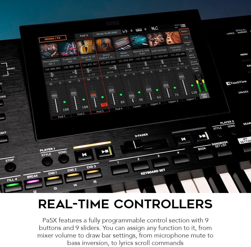 • Korg 76-Key Pa5X Professional Arranger: The 76-key version features lighter touch semi-weighted keys. All the key-beds include after-touch control for added expressively