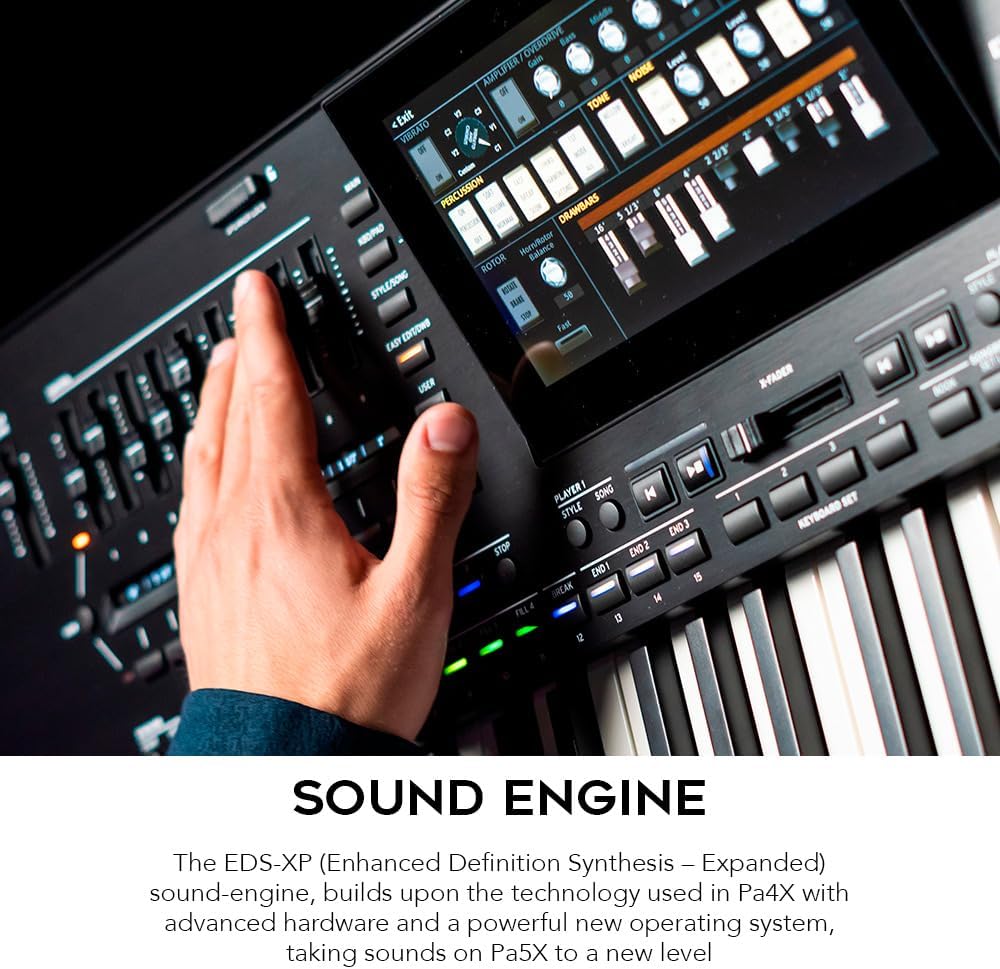 • Sound Engine: The EDS-XP (Enhanced Definition Synthesis – Expanded) sound-engine, builds upon the technology used in Pa4X with advanced hardware and a powerful new operating system, taking sounds on Pa5X to a new level