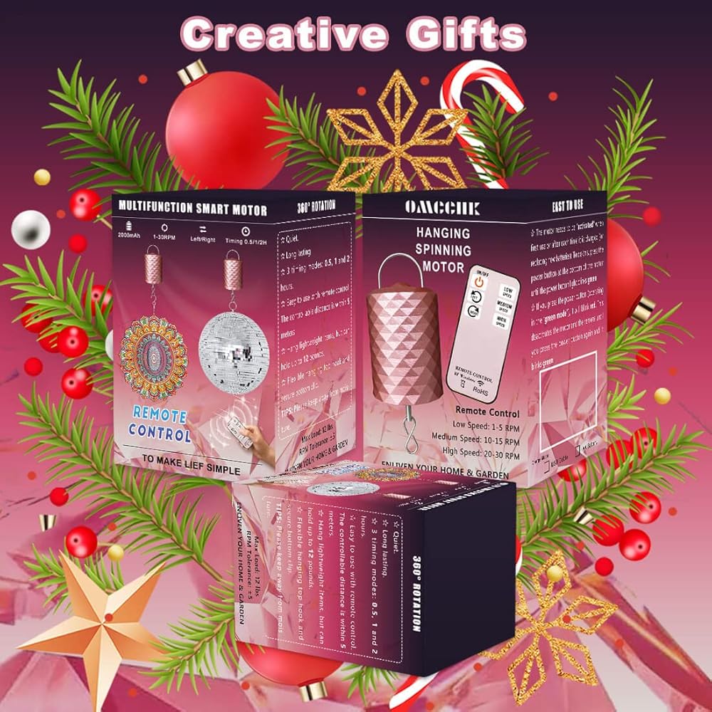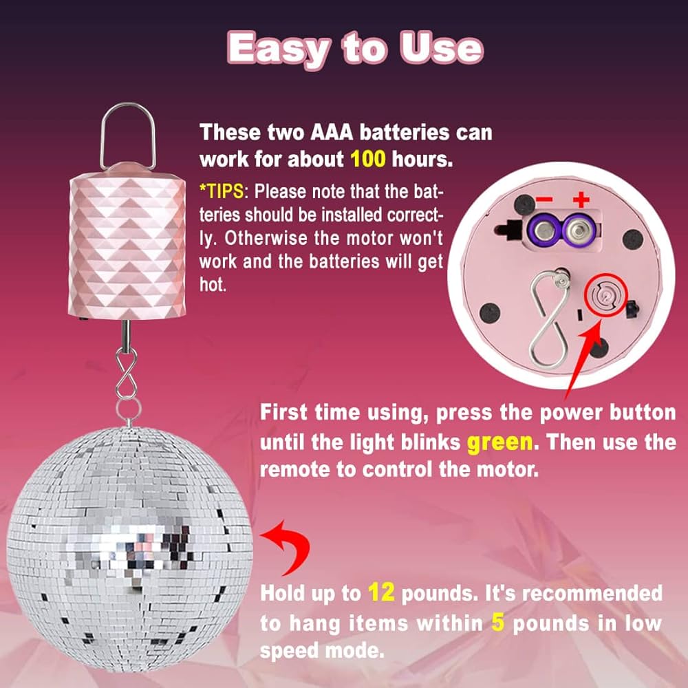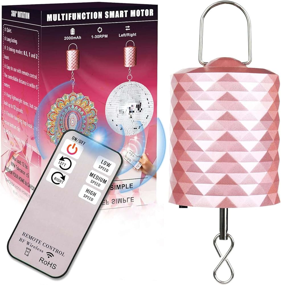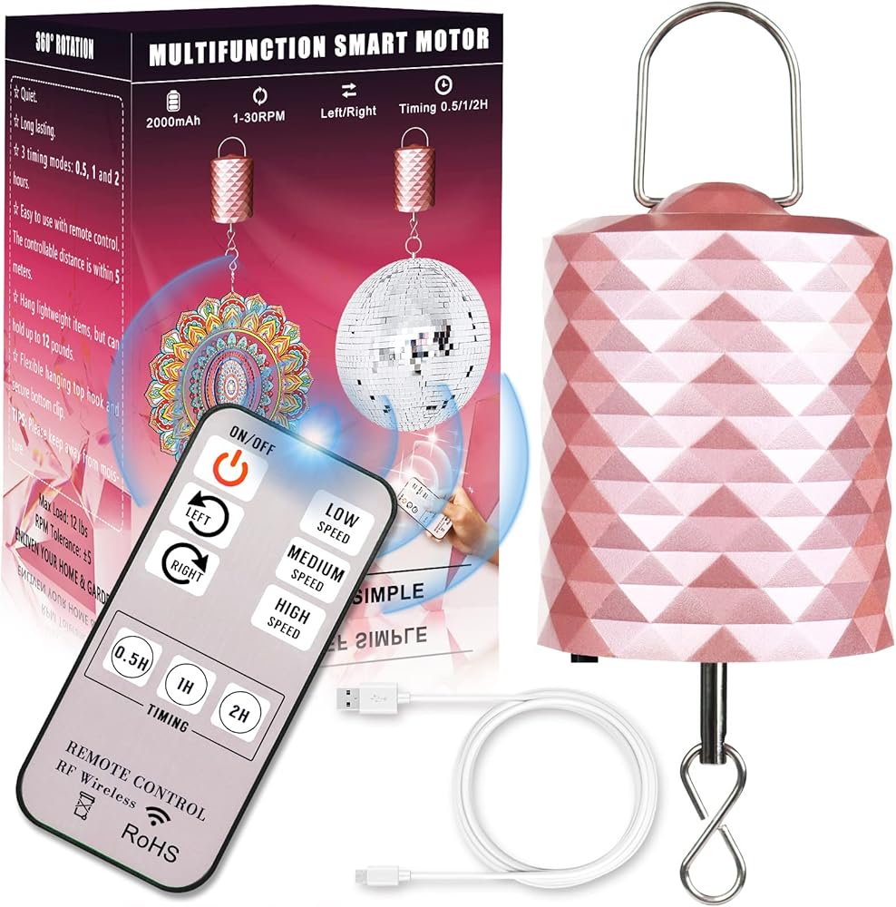 👍 محرك متنقل صغير الحجم يمكن حمله على طول الطريق: هذا المحرك الدوار لكرة الديسكو اللاسلكي يتوافق مع عملية التذهيب الأنيقة، والملمس جميل وكلاسيكي. يبلغ طول المحرك الدوار الصغير الذي يعمل بالبطارية باللون الذهبي الوردي مع خطاف تعليق 5.9 بوصة، وقطره 2.4 بوصة ووزنه 0.3 رطل، ومن السهل تعليقه وتوفير مساحة لدعائم الهالوين وزخارف عيد الميلاد. قم بتشغيل المحرك مع الديكور المعلق في المكان الذي تريده، ثم اجلس واستمتع بالدوران الهادئ.