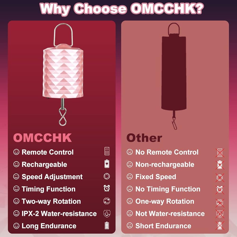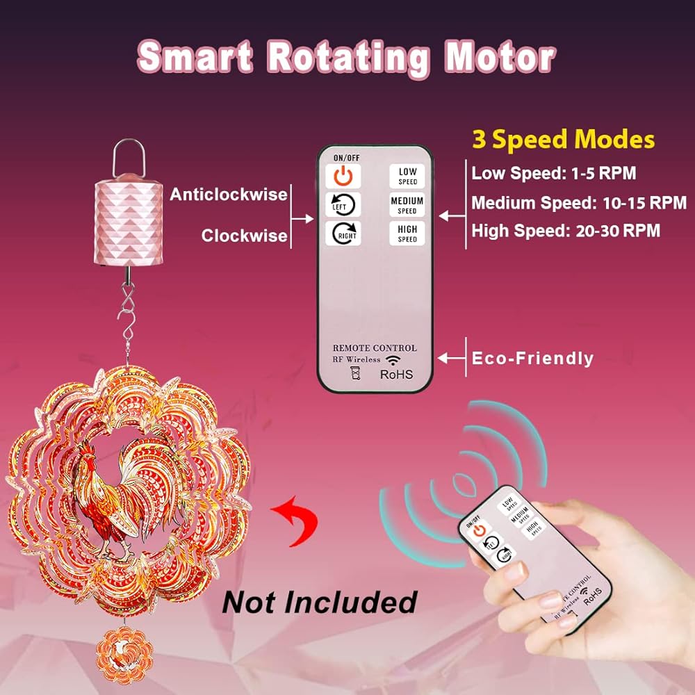 ⏰ محرك دوار الرياح بوظيفة التوقيت: يمكن توقيت المحرك الدوار الصغير بمقدار 0.5/1/2 ساعة ثم سيتم إغلاقه تلقائيًا بحلول الوقت الذي تحدده. يمكن أن تساعدك وظيفة التوقيت التلقائي على إيقاف تشغيل المحرك الدوار للتحكم عن بعد القابل لإعادة الشحن تلقائيًا بعد النوم ليلاً، مما يوفر الطاقة. إذا لم يتم ضبطه، فإن محرك العرض المعلق المصنوع من الذهب الأحمر سيستمر في العمل طوال الليل.