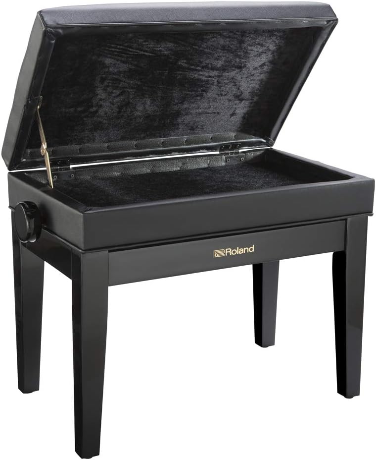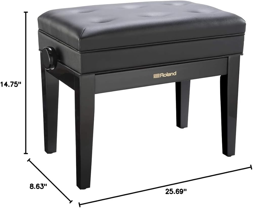 The Roland RPB-400PE is an adjustable-height bench seat for use with pianos and other keyboard instruments. Solid wood construction provides lasting durability. The seat top is cushioned for comfort during long playing sessions, and lifts to provide access to a storage compartment for sheet music and accessories.