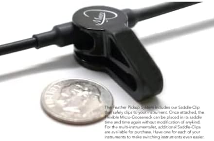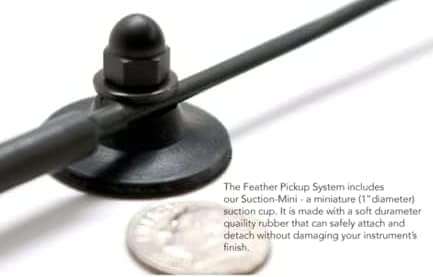 NEW -The Feather Clear - Specially designed for symphony musicians featuring a discreet clear cable and saddle clip to keep the pickup out of audience view during a performance. So compact that it can be positioned on a multitude of instruments without modification or permanent installation and still faithfully amplifies the natural tone and beauty of your instrument!