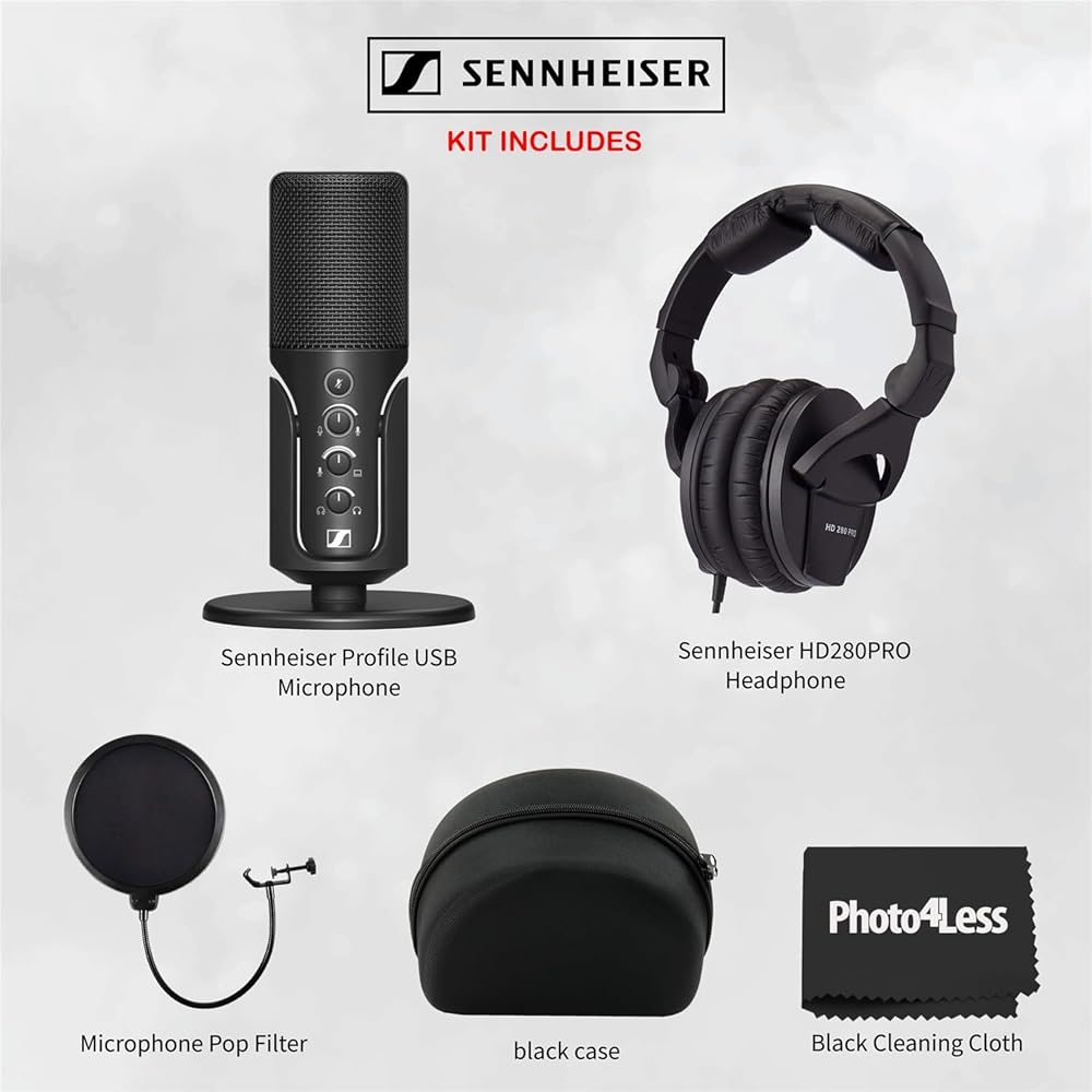 تتضمن هذه الحزمة: كل ما تحتاجه لبدء التسجيل: ميكروفون Sennheiser Profile USB للحصول على صوت واضح ونقي، وسماعات رأس Sennheiser HD280PRO موديل جديد للحصول على صوت غامر، وحقيبة سماعة رأس يدوية للحفاظ على أمان Sennheiser HD 280 Pro، وفلتر بوب للميكروفون فعال لضمان تسجيلات الجودة.